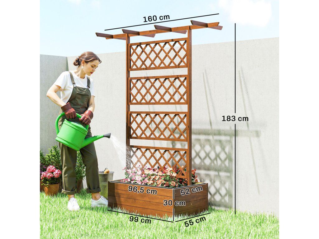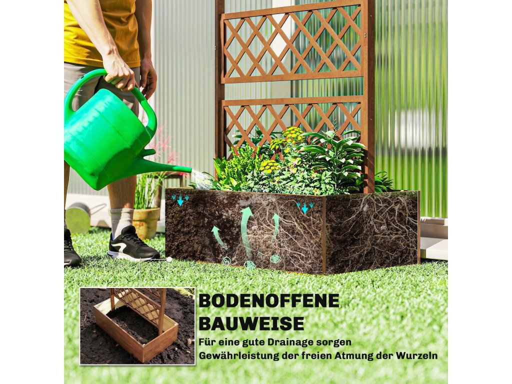 Design 2 v 1: Kombinuje vyvýšený záhon s mříží. Samostatná jednotka s květináčem na květiny a rostliny a mřížkovanou zadní částí pro popínavé rostliny.