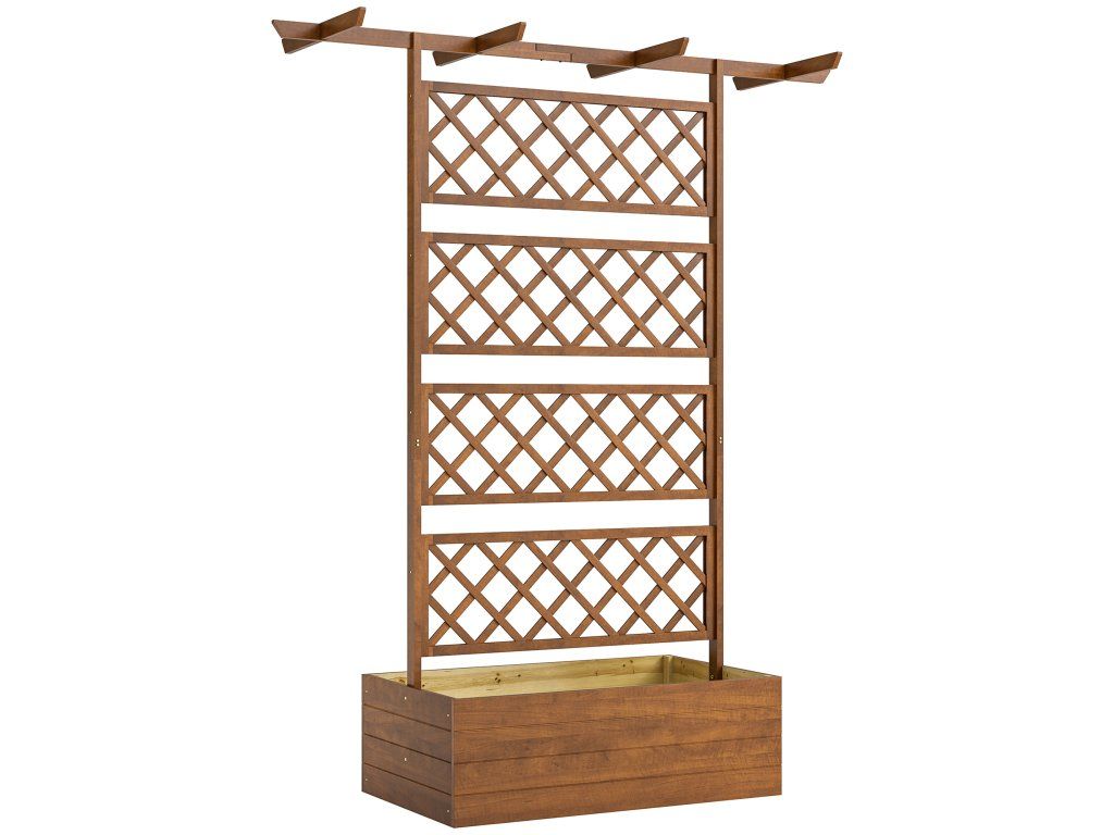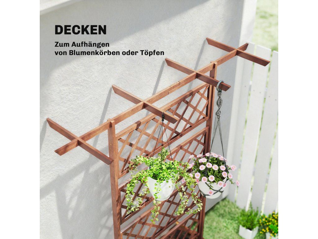 Tento stylový vyvýšený balkonový květináč má mřížku a stříšku pro zavěšení rostlin. Květináč je vyroben z robustního jedlového dřeva, takže je ideální pro venkovní použití. Oživte svůj domov tímto květináčem, který nabízí soukromí a stylově vystaví vaše rostliny.