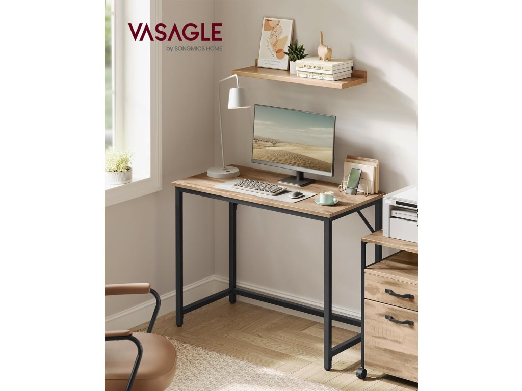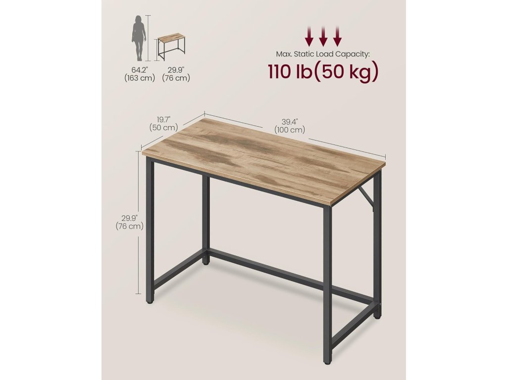 Počítačový stůl, kancelářský stůl, 100 x 50 x 76 cm, do pracovny, ložnice, obývacího pokoje, velbloudí hnědá a inkoustově černá.