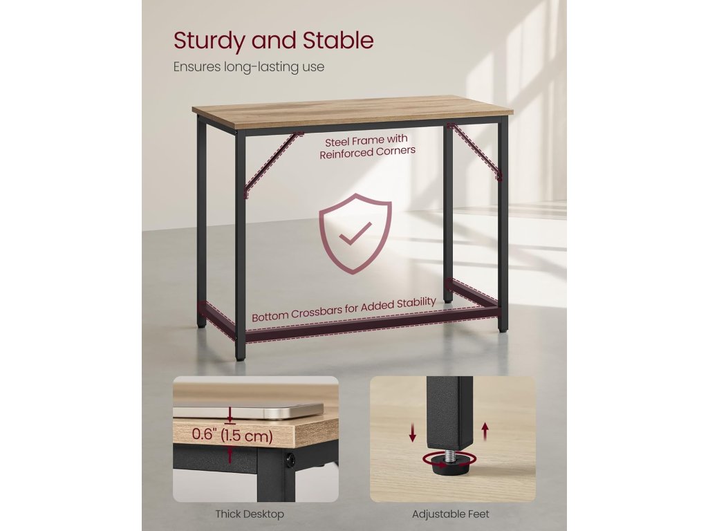 【Žádné kymácení】Nastavitelné nohy udržují počítačový stůl v rovnováze i na mírně nerovných podlahách - už žádné nepříjemné kymácení, které by rušilo vaši práci nebo studium. Chrání také vaši podlahu před poškrábáním