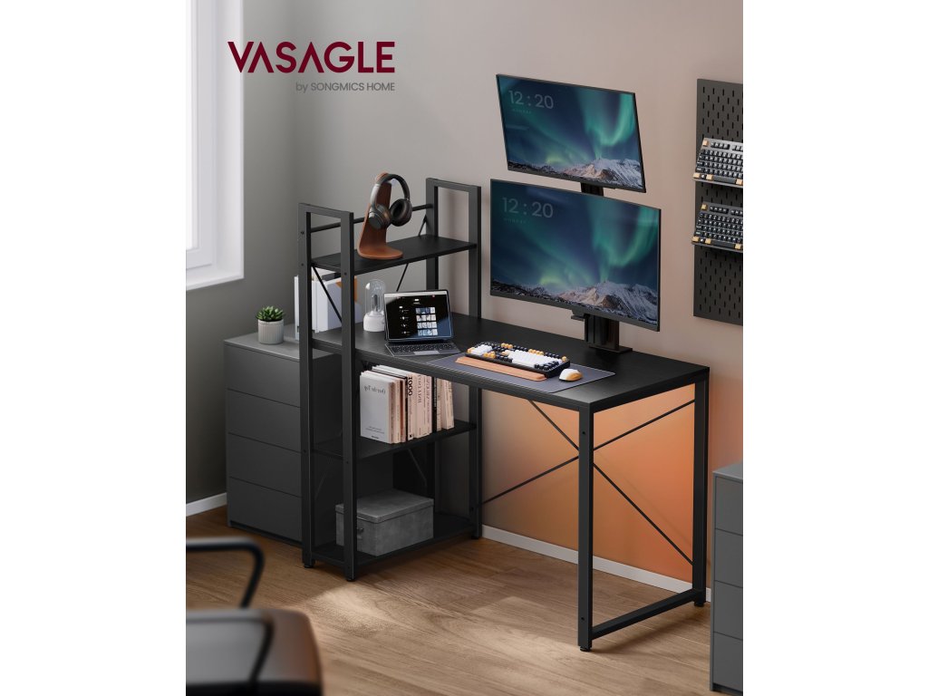 Flexibilní konfigurace pracovní plochy Počítačový stůl VASAGLE je vybaven flexibilně připojitelnou policí, která umožňuje jeho umístění na preferovanou stranu - vpravo nebo vlevo. Tato funkce umožňuje přizpůsobení potřebám vašeho pracovního prostoru.Dostatek úložného prostoru Velkorysá stolní deska o rozměrech 56 x 120 cm, na kterou se vejdou až 2 monitory, a další police na notebooky, soubory a další věci. tento psací stůl vám zajistí, že budete mít všechny své pracovní nebo studijní potřeby na dosah ruky.Robustní a odolný Tento počítačový stůl je vyroben z robustní oceli a vysoce kvalitních dřevotřískových desek a unese až 50 kg. Poskytuje nejen stabilní pracovní plochu, ale také slibuje spolehlivé používání po mnoho let.Nastavitelné nohy Nastavitelné nohy tohoto stolu pro domácí kancelář bez námahy vyrovnávají nerovnosti podlahy a zajišťují, že váš stůl zůstane během práce nebo studia stabilní a nebude se viklat. zvýšení produktivitySnadná montáž Montáž je díky jasně označeným dílům a jednoduchým návodům hračka. Strávíte méně času sestavováním a více času užíváním si nového herního stolu s odkládací policí.| Kategorie: | Psací a pracovní stoly |