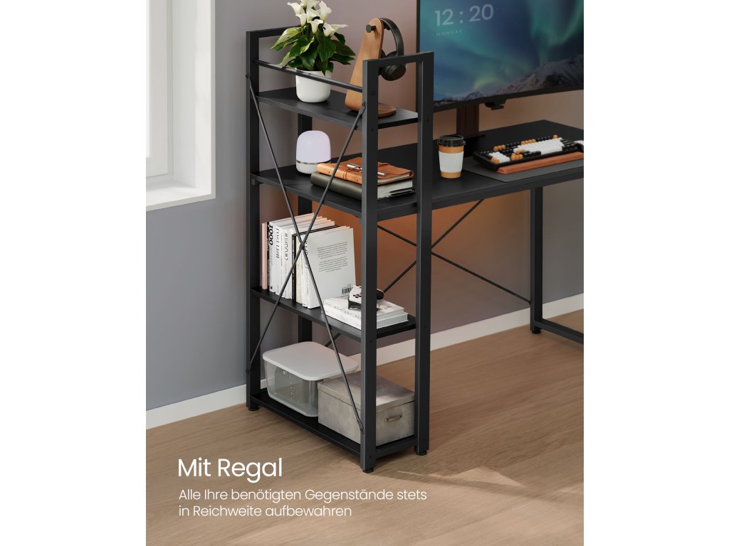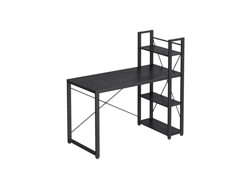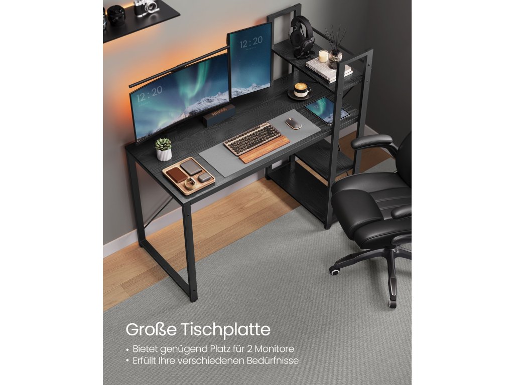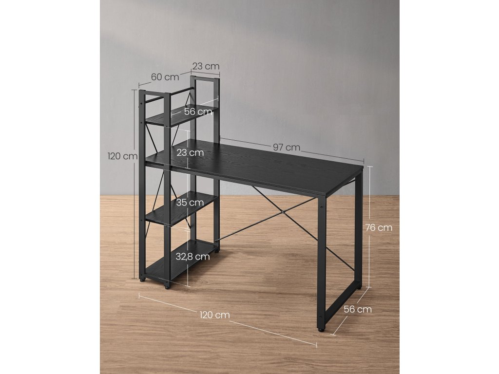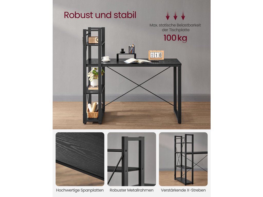 Počítačový stůl, psací stůl s úložnými policemi vlevo nebo vpravo, šířka 120 cm, pro domácí kancelář, pro studium, snadná montáž, průmyslový styl, černá ebenová.