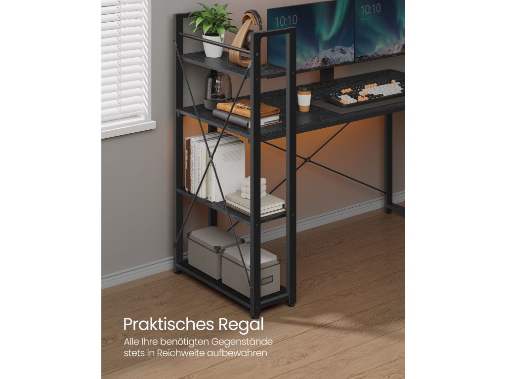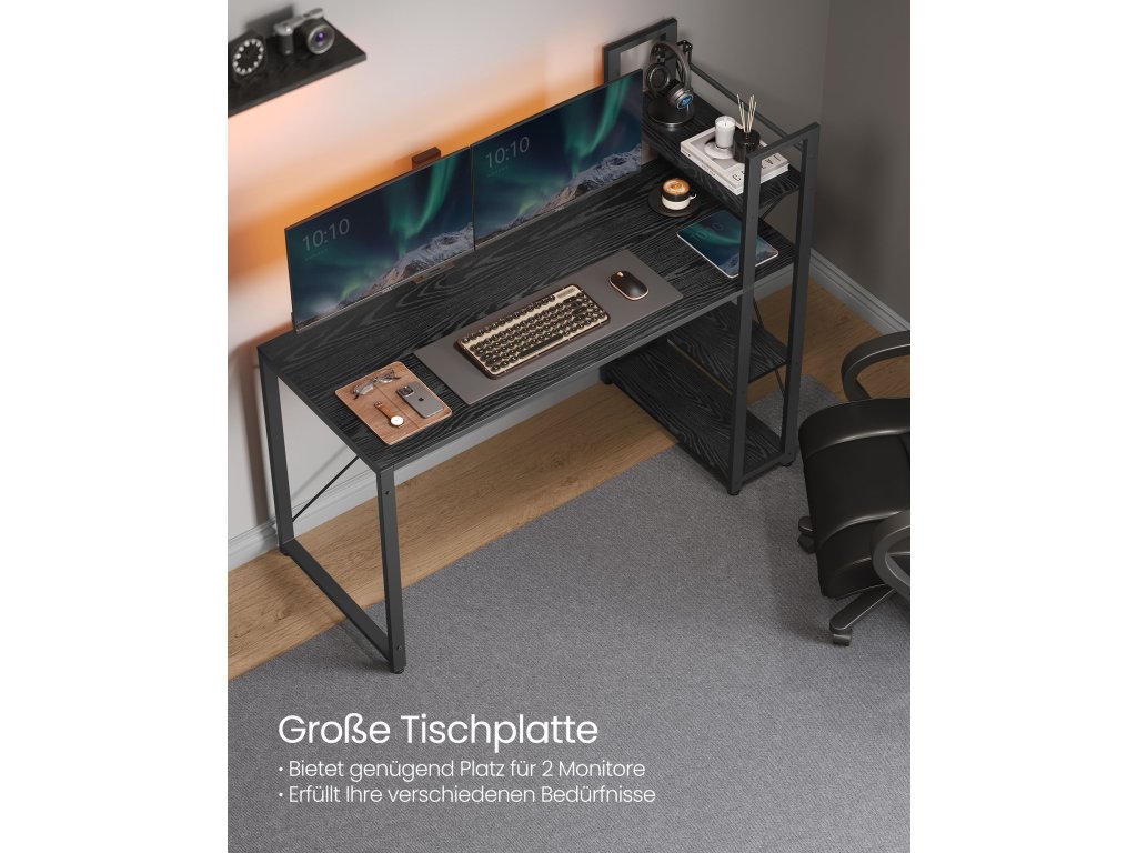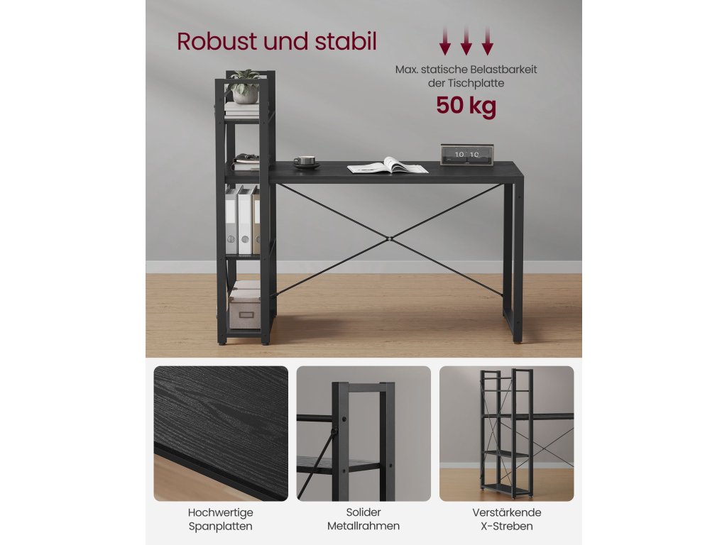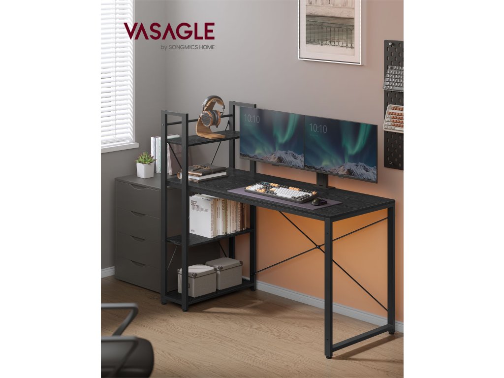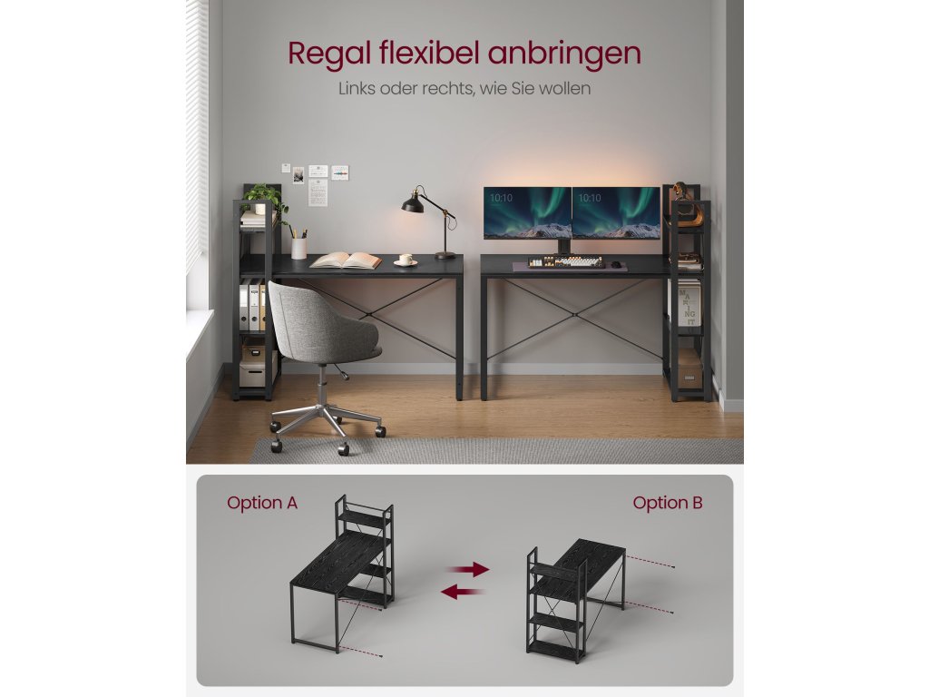 Počítačový stůl, psací stůl s úložnými policemi vlevo nebo vpravo, šířka 137,2 cm, pro domácí kancelář, pro studium, snadná montáž, průmyslový styl, černá.