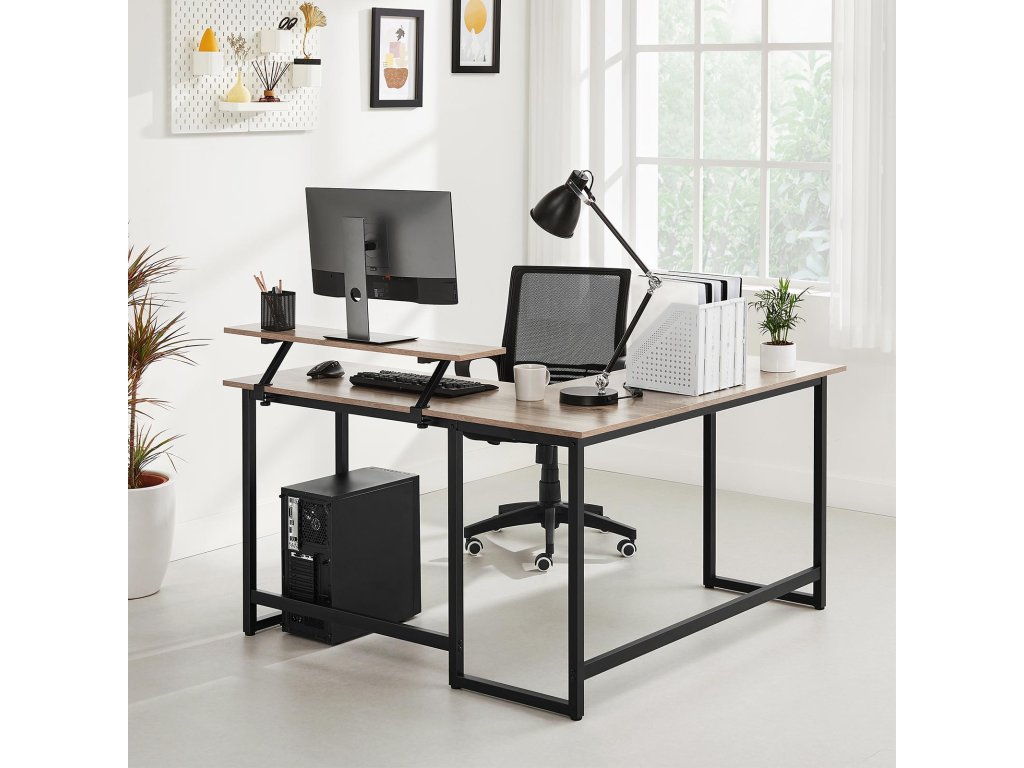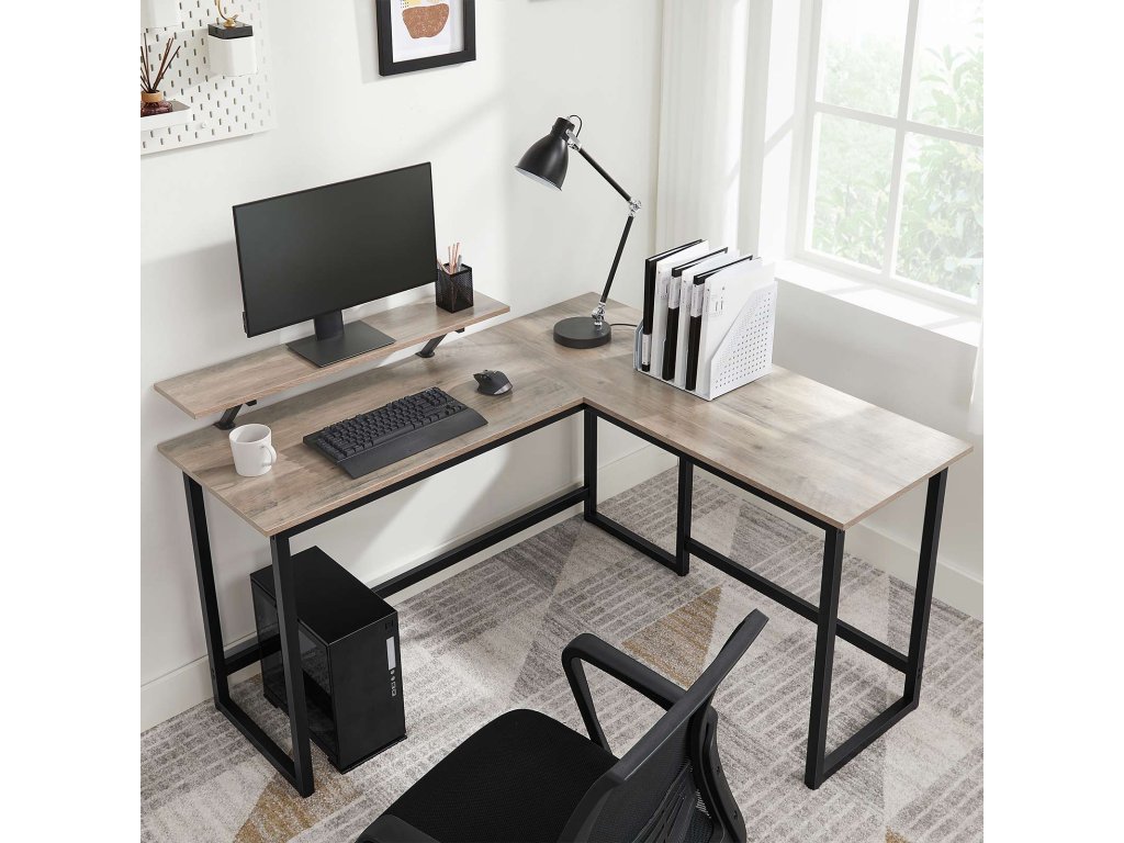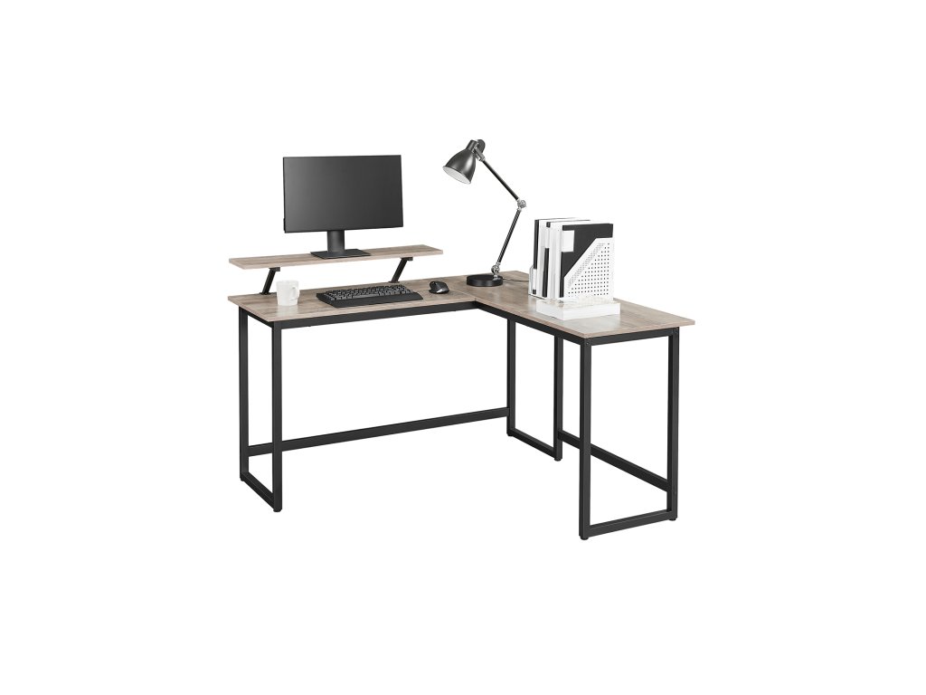 Počítačový stůl, psací stůl ve tvaru L, průmyslový rohový stůl se stojanem na monitor, pro domácí kancelář, psaní a hraní her, úspora místa, snadná montáž, béžová a černá.