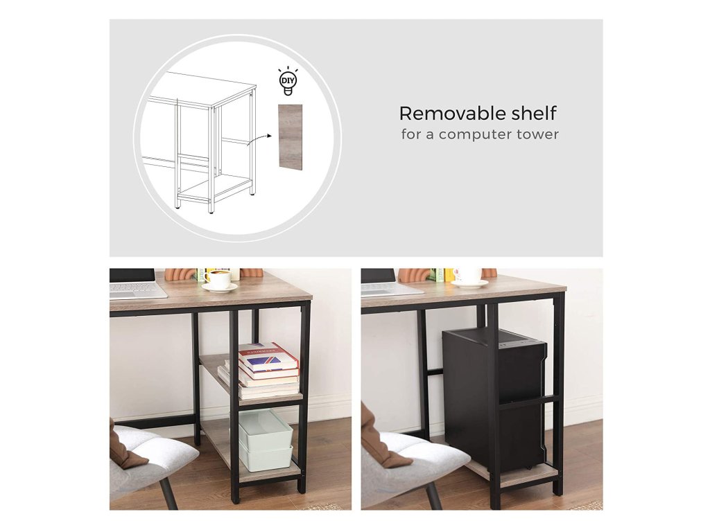 Odnímatelná odkládací police: Horní police ze 2 otevřených úložných polic je odnímatelná. Můžete ji vyjmout, aby se na ni vešla počítačová věž, nebo si ji ponechat pro snadné uložení knih, souborů nebo často používaných předmětů.Velká pracovní plocha: Tento stůl ve tvaru písmene L má pracovní plochu o rozměrech 138 x 138 cm, na kterou se vejdou 3 až 4 počítačové monitory, a poskytuje dostatečnou plochu pro práci a studium.Robustní a odolné: Díky robustnímu ocelovému rámu vyztuženému spodními příčkami v kombinaci s kvalitní dřevotřískovou deskou je tento rohový stůl robustní a odolný a unese až 50 kg. studium a trvalá podpora rekreaceOdříznutý roh pro úklid šňůr: Zadní roh tohoto kancelářského stolu ve tvaru písmene L je odříznutý, aby jím mohly procházet kabely. pomáhá vám spravovat kabely od elektroniky, aby váš pracovní stůl byl čistý a příjemný na pohled.Praktické nastavitelné nohy: Nastavitelné nohy udržují počítačový stůl stabilní na nerovných podlahách a chrání podlahu před poškrábáním. Plynulost vaší mysli už nebude přerušována nepříjemným vikláním!| Kategorie: | Psací a pracovní stoly |