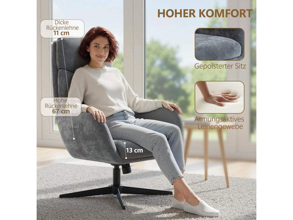 Prodyšné pohodlí: Ponořte se do 13 cm silného polstrovaného sedáku a 11 cm silného opěradla s dvouvrstvou konstrukcí. Toto křeslo je čalouněno prodyšnou látkou s imitací lnu a zaručuje celoroční pohodlí – ideální pro čtení, sledování televize nebo relaxaci po dlouhém dni.