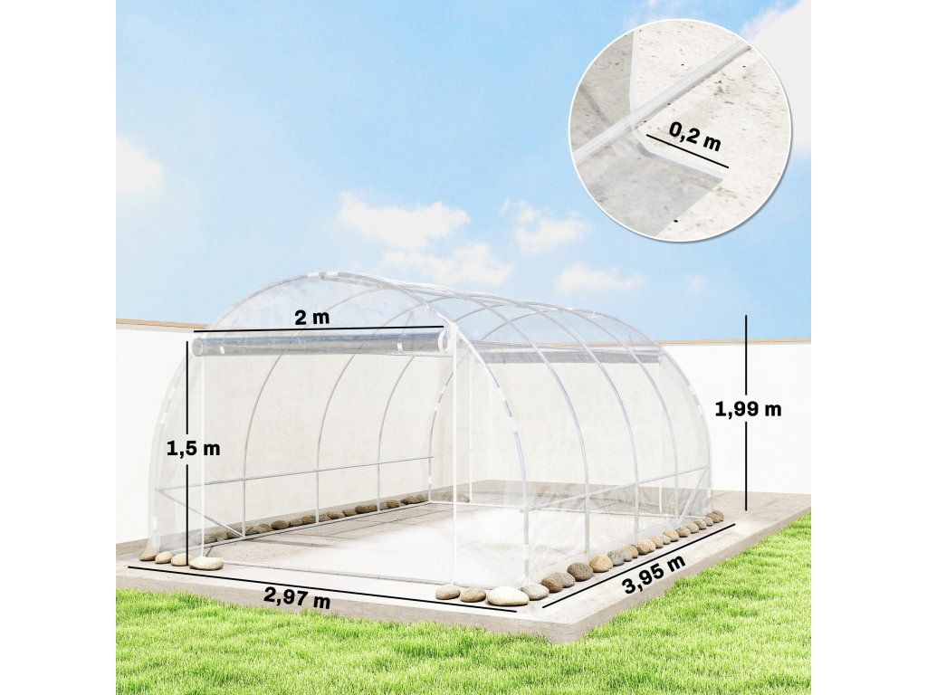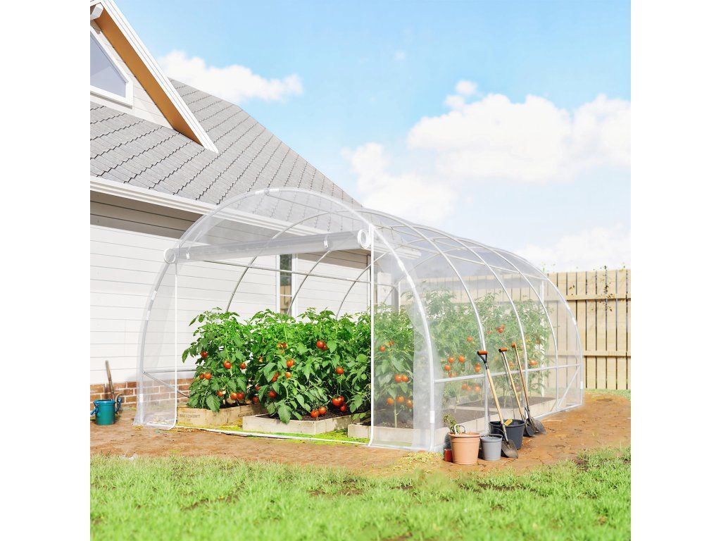 Už vás nebaví špatné počasí a otravní škůdci na zahradě? Polytunelový skleník je perfektním řešením. Pozinkovaný ocelový rám s diagonálními vzpěrami zajišťuje stabilitu, zatímco robustní PE kryt s klipy vytváří ideální mikroklima. Pohodlné rolovací dveře nabízejí snadný přístup. Ideální pro hobby zahrádkáře, kteří hledají polytunelový skleník, aby si vytvořili vlastní zahradní ráj!