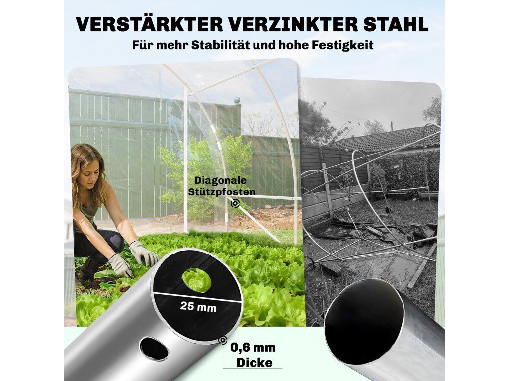 Robustní konstrukce: Pozinkovaný ocelový rám a diagonální podpěrné tyče Skleníky nabízejí ochranu proti korozi a stabilitu. Ideální pro pěstování ovoce a zeleniny – užijte si zahradničení!