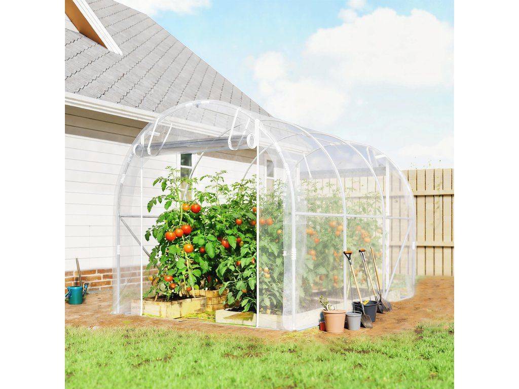 Už vás nebaví špatné počasí a otravní škůdci na zahradě? Polytunelový skleník je perfektním řešením. Pozinkovaný ocelový rám s diagonálními vzpěrami zajišťuje stabilitu, zatímco robustní PE kryt s klipy vytváří ideální mikroklima. Pohodlné rolovací dveře nabízejí snadný přístup. Ideální pro hobby zahrádkáře, kteří hledají polytunelový skleník, aby si vytvořili vlastní zahradní ráj!