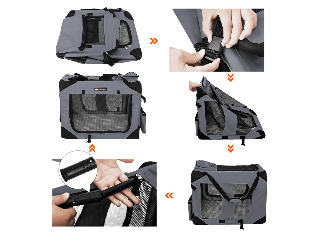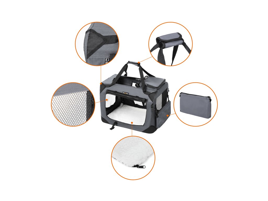 Vezměte s sebou svého chlupatého kamaráda: Chcete vzít svého čtyřnohého přítele na dovolenou? Nebo ho potřebujete bezpečně odnést k veterináři? Snadno rozložte a sestavte tuto přepravku pro domácí mazlíčky. a je připraven chránit vašeho domácího mazlíčka na cestách - zabere to jen pár minut!"Co se děje venku? Díky okénkům ze síťoviny na tašce pro zvířata a prostornému prostoru uvnitř může váš zvědavý chlupatý kamarád vykouknout ven a vychutnat si výhledy i čerstvý vzduch. abyste se nemuseli bát, že se bude cítit osaměle a stísněně.