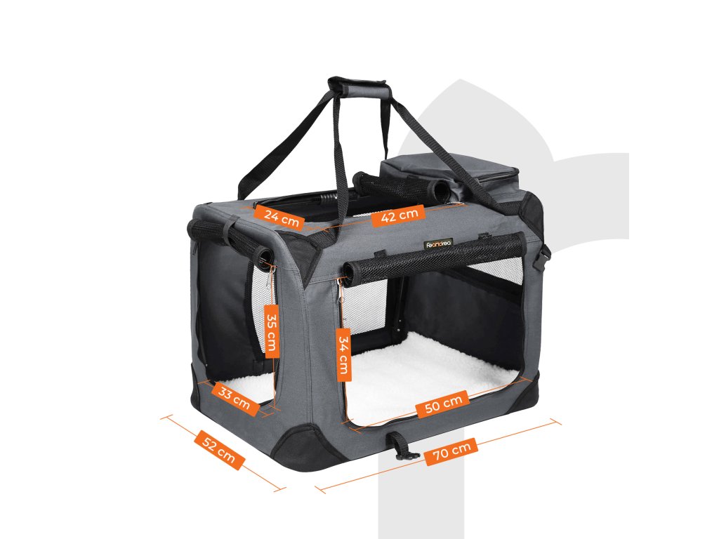Má dlouhý dosah: Aby s vámi váš mazlíček mohl cestovat daleko a poznat širší svět, je nutná odolnost a pohodlí. Díky kovovému rámu, tkanině Oxford odolné proti opotřebení a nadýchané podložce uvnitř se váš kamarád bude na cestách cítit bezpečně a útulně.Když výlet skončí: Snadno očistěte nečistoty a skvrny měkkým kartáčem, složte psí boudu na plocho, zastrčte ji do rohu obývacího pokoje a čekejte na další šťastný výlet!Zkontrolujte velikost: Velikost této přepravky pro psy je 60 x 42 x 42 cm. Abyste však měli jistotu, že vašemu zvířeti sedne, záleží také na velikosti vašeho mazlíčka. Proto změřte výšku a délku svého psa, abyste se ujistili, že jste vybrali správnou velikost.| Kategorie: | Ostatní potřeby pro cestování se psem |