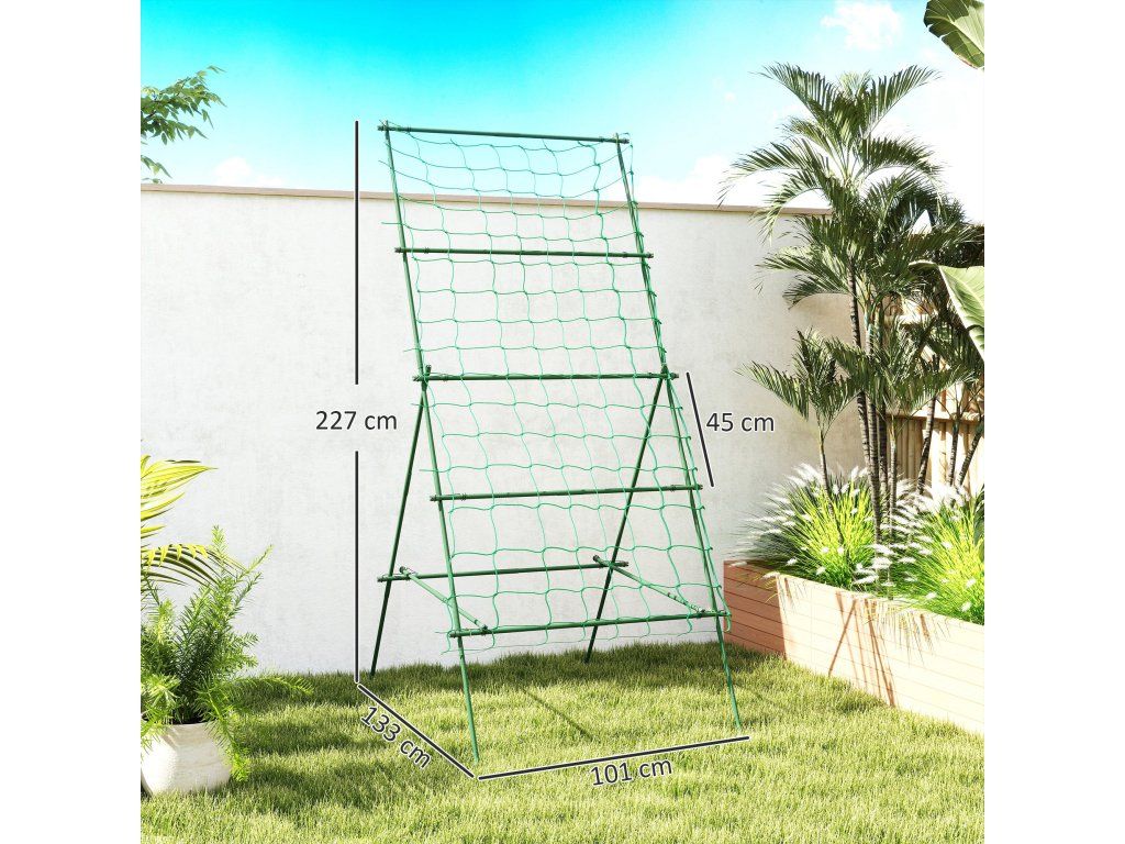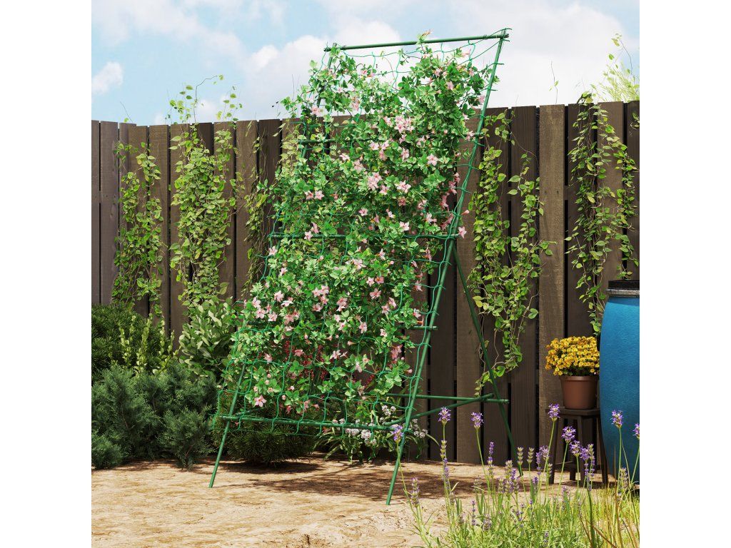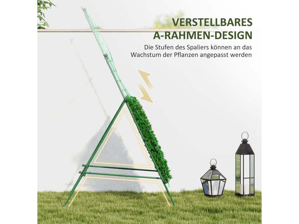 Stabilní A-rámová konstrukce: Mřížka poskytuje robustní A-rámovou konstrukci, ideální pro podepření okurek a další popínavé zeleniny, s nastavitelnými policemi pro přizpůsobení růstu rostlin.
