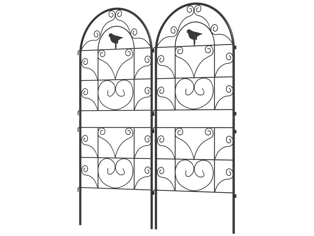 Balení 2 treláží: Tato sada obsahuje dvě robustní podpěry pro rostliny, které poskytují dostatek prostoru pro šplhání různých popínavých rostlin, jako jsou růže a hrášek, ideální pro jejich vertikální růst a kvetení.