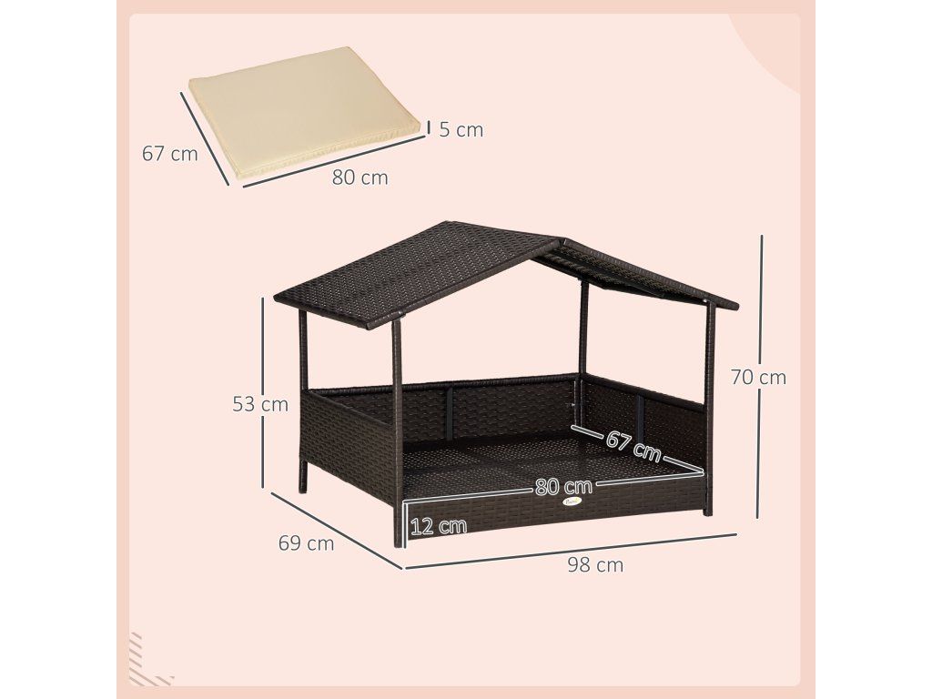 Venkovní ratanový psí pelíšek 69 x 98 x 70 cm | kávový