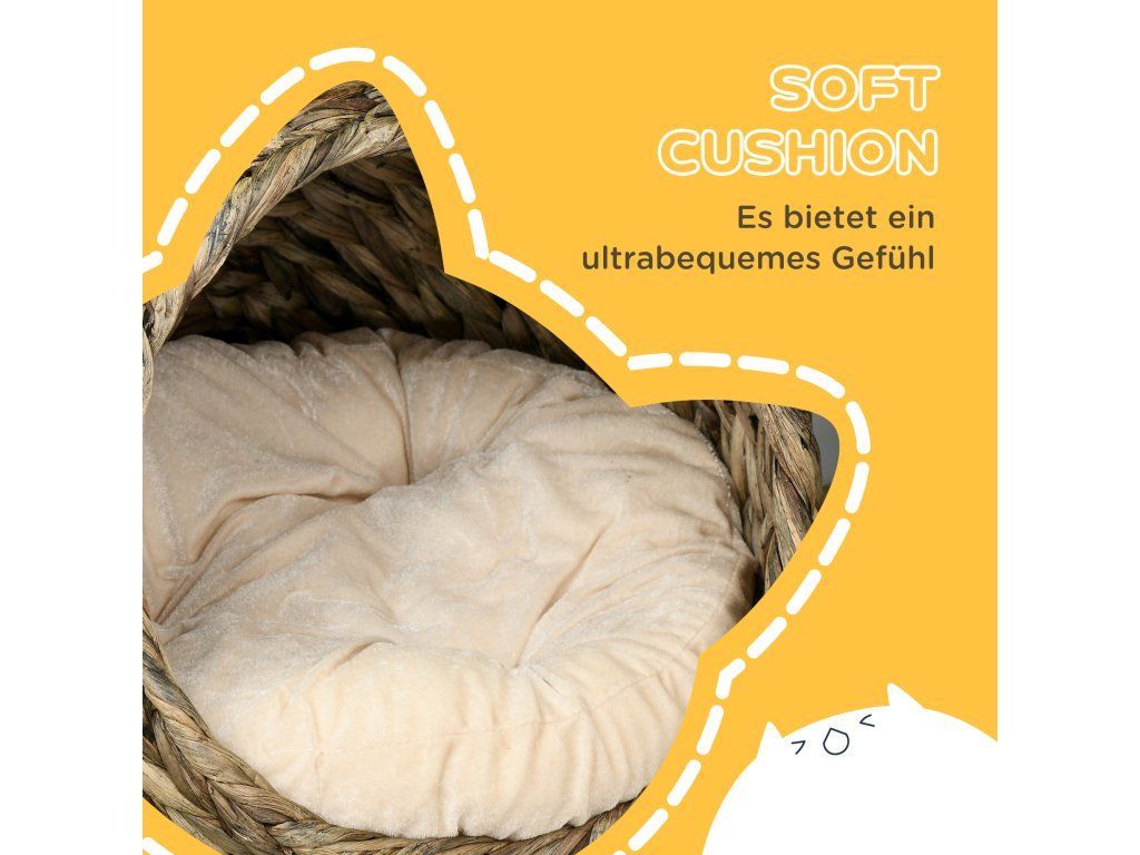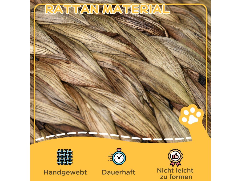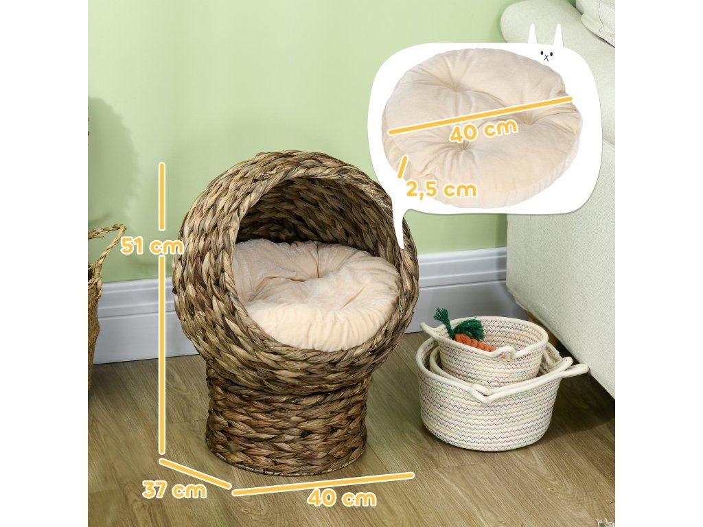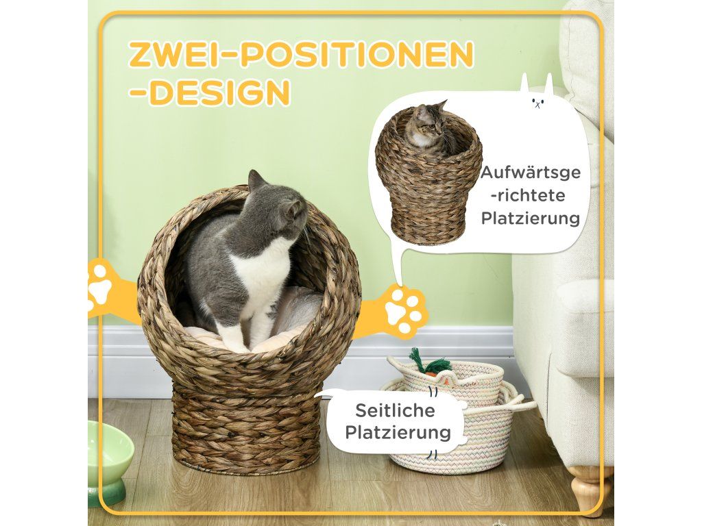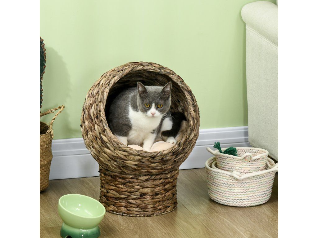 Přírodní materiály: Vyrobeno z přírodního vodního hyacintu pro vytvoření útulného a bezpečného prostoru pro vašeho kočičího přítele.