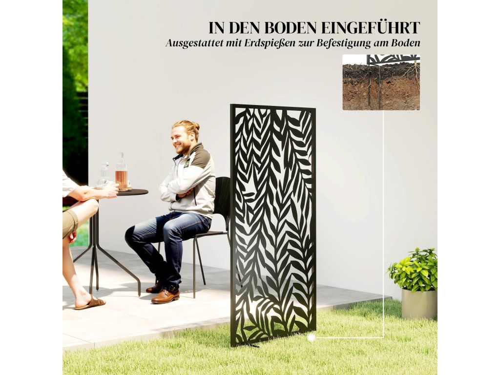 Praktický design: Lehká, přenosná zástěna na ochranu soukromí, kterou lze flexibilně umístit v zahradě. Práškově lakovaný kovový rám a robustní zemní kotvy zajišťují odolné a proti korozi odolné venkovní použití.