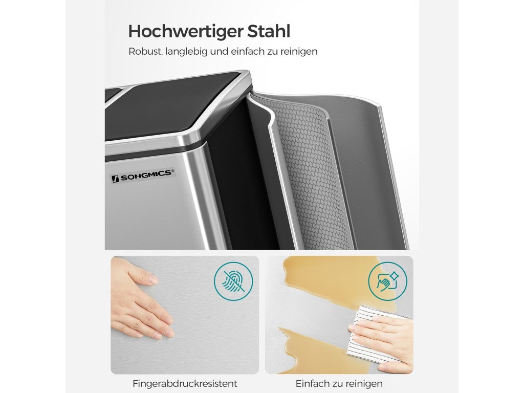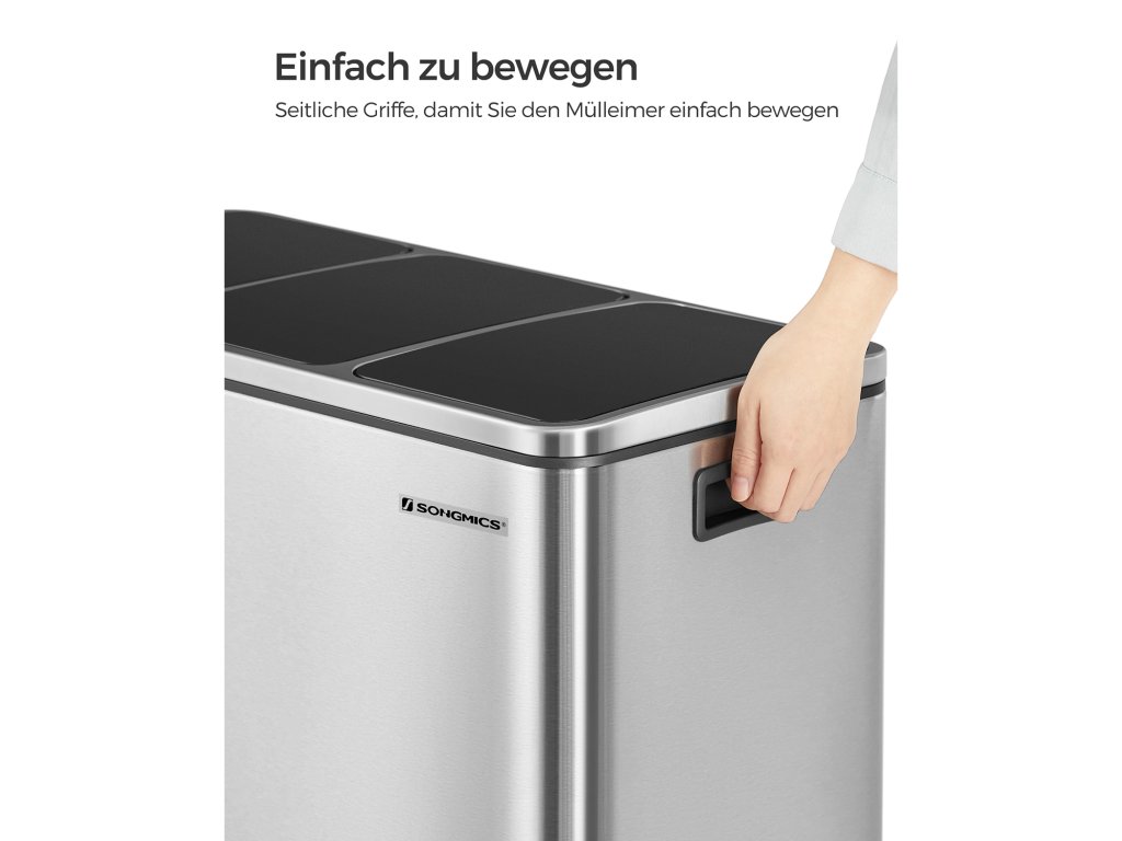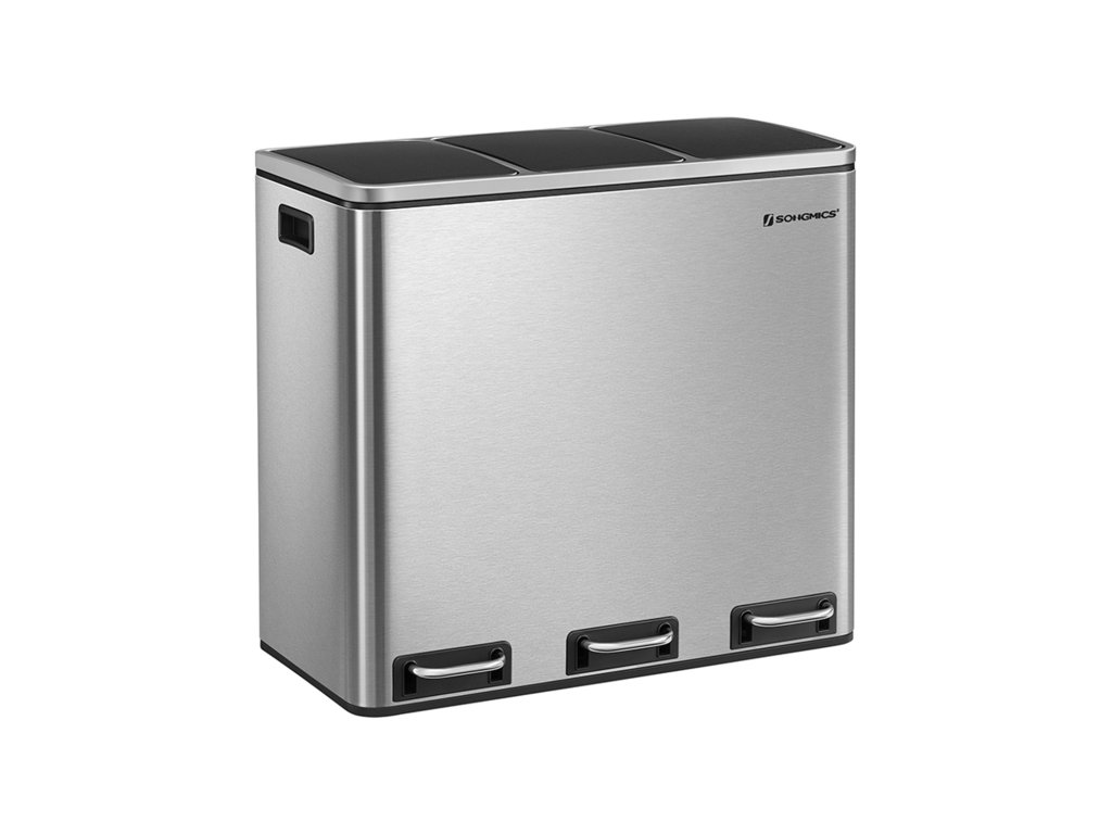 Výhoda pro vaši kuchyni: Tento elegantní pedálový odpadkový koš se 3 přihrádkami, které umožňují snadné třídění recyklovatelných odpadů, vyniká příjemným estetickým vzhledem a praktickou funkčností; a to vše lze provést, aniž byste se dotkli koše!;Má to i měkkou stránku: Přestože má koš na odpadky pevný ocelový plášť, je šetrný - díky tlumicímu mechanismu se víka zavírají jemně, pomalu a tiše. udržuje bakterie a pachy na uzdě bez hlasitého řinčení.Kbelík v koši: Ups! Protrhl se sáček s vložkou a vytvořil mastnou louži? Nebojte se, vyjímatelné kbelíky v každém koši jsou vybaveny rukojetí, která usnadňuje vyprazdňování a čištění.Sedí u zdi: Obdélníkový odpadkový koš umístěte naplocho ke stěně, abyste ušetřili místo; víko při otevření nenarazí na stěnu.Co získáte: Stříbrno-černý odpadkový koš s 3 přihrádkami o objemu 18 l, praktickými pedály a vyjímatelnými vnitřními kbelíky pro snadnou likvidaci odpadu a bezproblémovou recyklaci.| Kategorie: | Odpadkové koše |