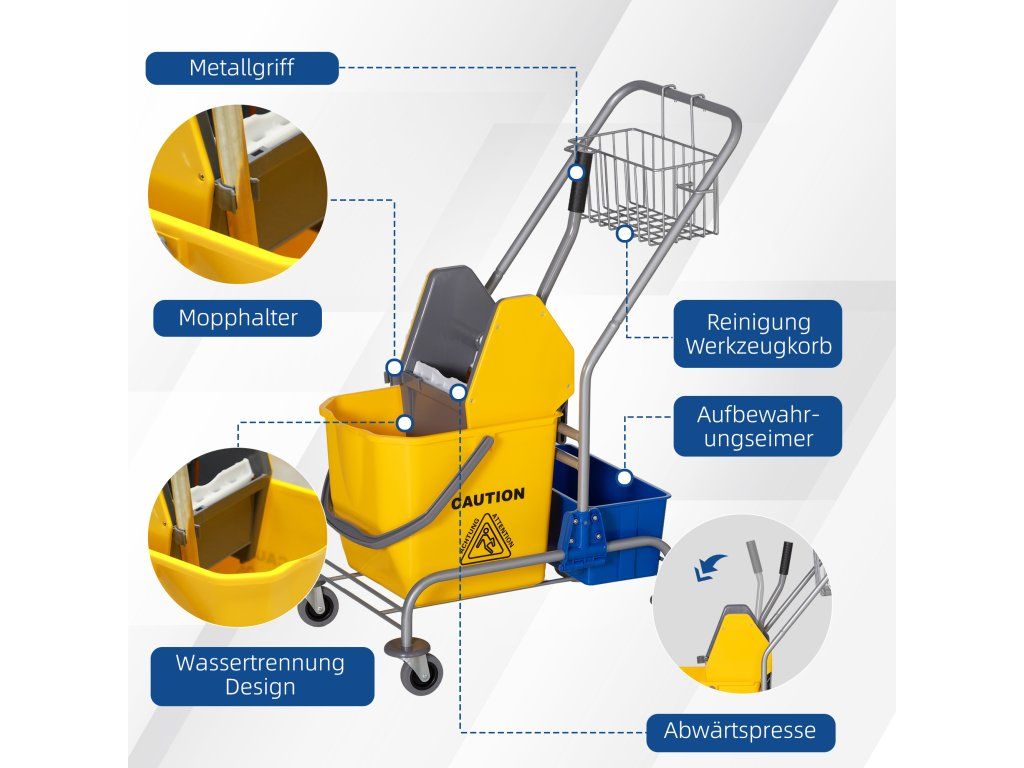 Snadné přemisťování: Tento profesionální úklidový vozík je vybaven ergonomickou rukojetí a čtyřmi kolečky pro snadnou manévrovatelnost.