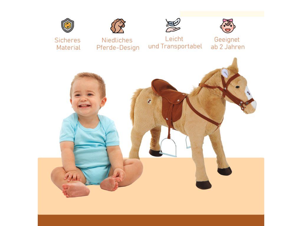 Pro mladé milovníky koní: Tento klasický béžový plyšový kůň je vhodný pro chlapce i dívky od 2 let a je ideální pro malé jezdce, kteří chtějí zažít dobrodružství.