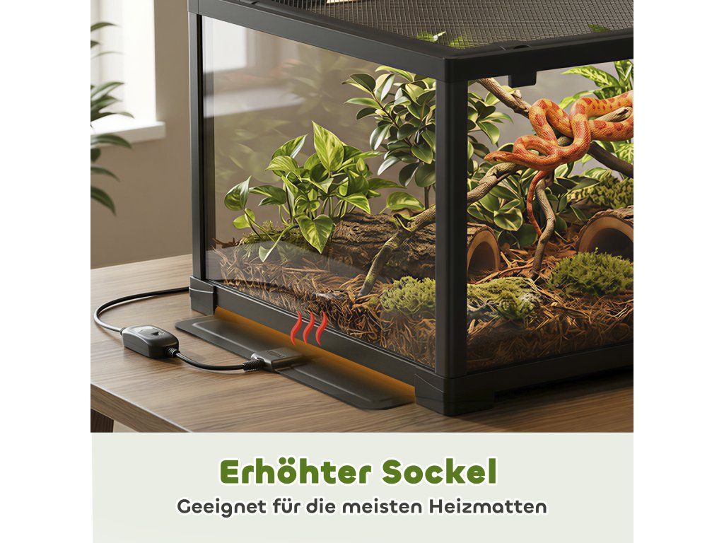 Kompatibilní s vyhřívacími podložkami: Zvýšená, vodotěsná základna vivária je kompatibilní s většinou vyhřívacích podložek, což vám umožní vytvořit působivá pouštní nebo deštná terária, která odrážejí váš osobní styl.