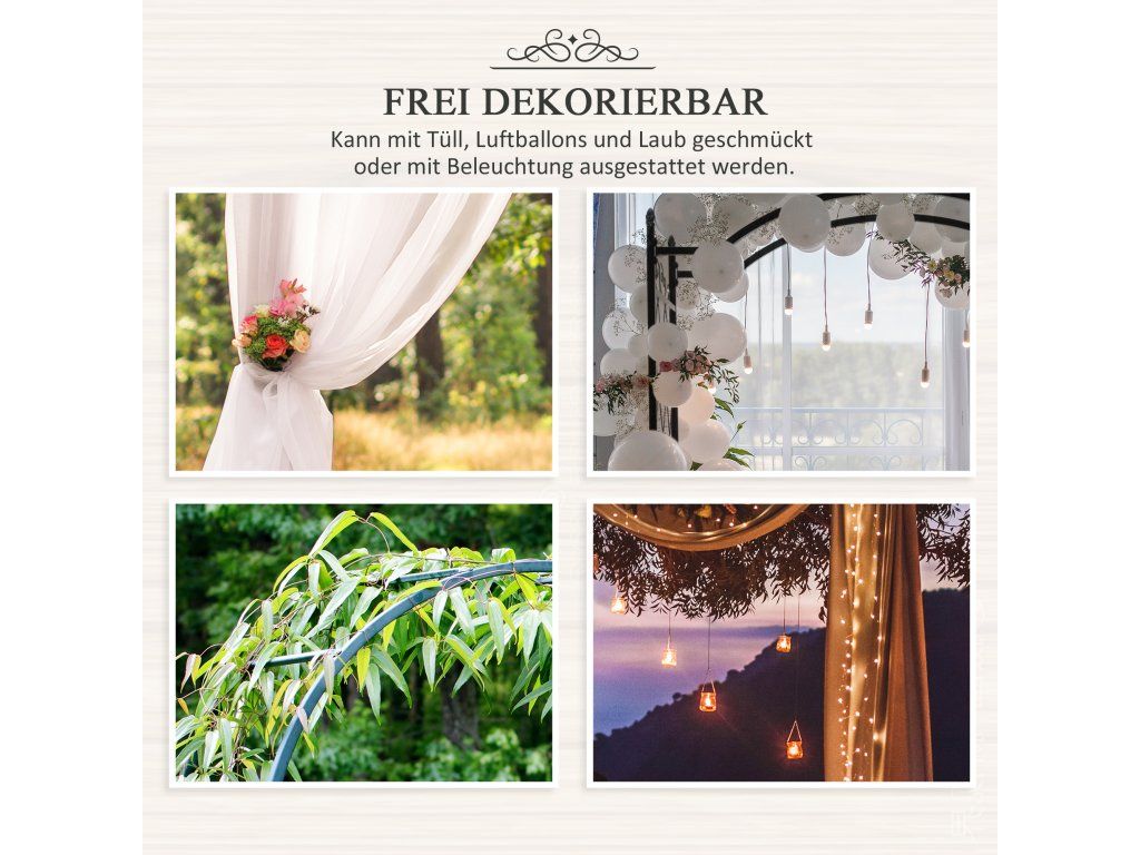 ✔ Oblouk lze také ozdobit balónky nebo světýlky pro oslavy.