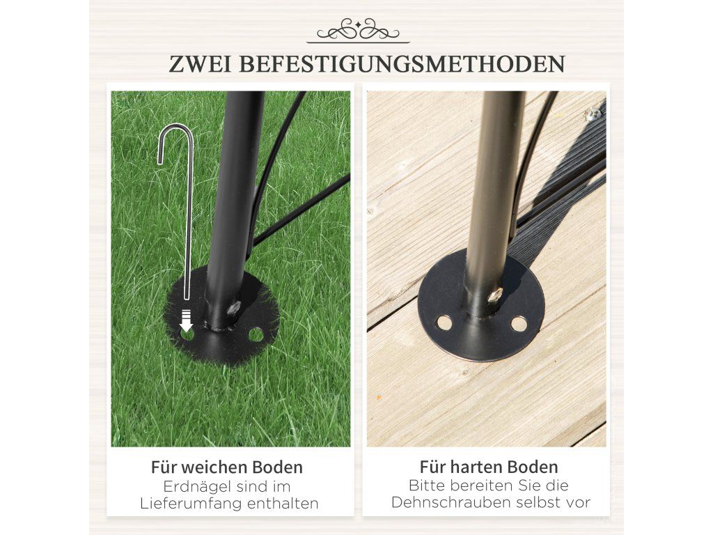 ✔ Součástí balení jsou zemní kolíky pro ukotvení.