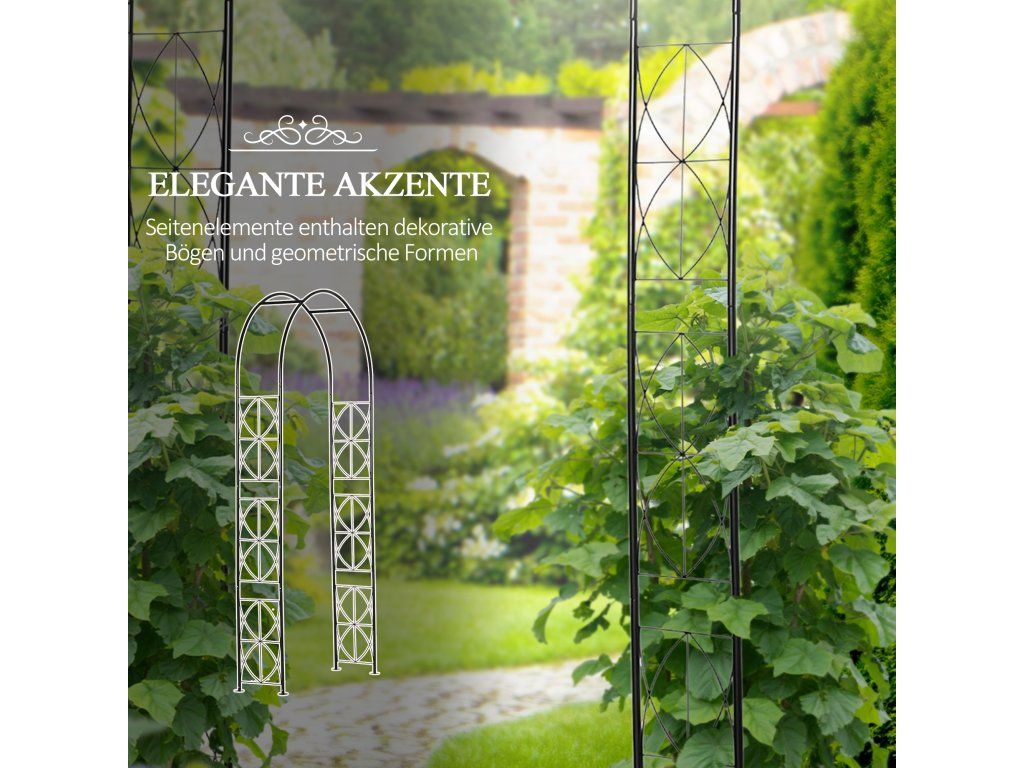 Všestranný: Oblouk na rostliny je vhodný pro podepření široké škály popínavých rostlin, jako je břečťan, popínavé hortenzie, vinná réva, chmel nebo popínavé růže.