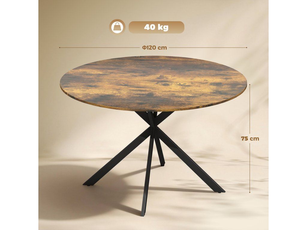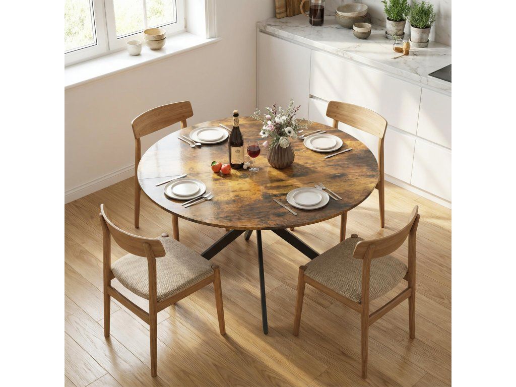 ✔ Kulatý stůl o šířce 120 cm pohodlně pojme čtyři osoby, ideální pro rodinné stolování.