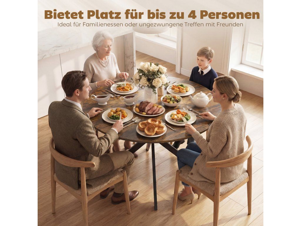 Ideální velikost pro čtyři osoby: Kulatý kuchyňský stůl o průměru 120 cm pohodlně pojme čtyři osoby – ideální pro rodinné večeře, pohodový brunch nebo zábavné herní večery.