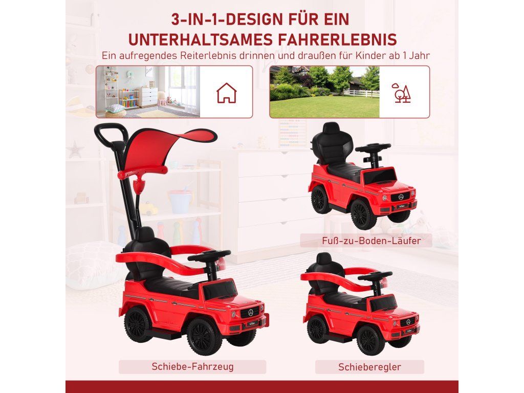Sledujte, jak vaše dítě roste s odrážedlem s madlem! Toto oficiálně licencované odrážedlo Mercedes-Benz se vyznačuje konstrukcí 3 v 1: chodítko, dětské chodítko nebo odrážedlo. Interaktivní zvuky volantu umocňují zábavu, bezpečnostní pás a madlo poskytují ochranu a pod sedadlem je praktický úložný prostor pro malé poklady. Ideální pro vzrušující dobrodružství plná radosti a učení!