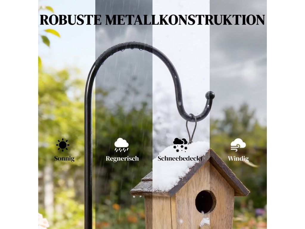 MASIVNÍ HÁČKY: Vyrobeny z masivního kovu s černým práškovým lakem, 160 cm dlouhé, odolné proti korozi a povětrnostním vlivům. Ideální pro solární světla, lucerny, krmítka pro ptáky a zahradní dekorace - odolné venku.