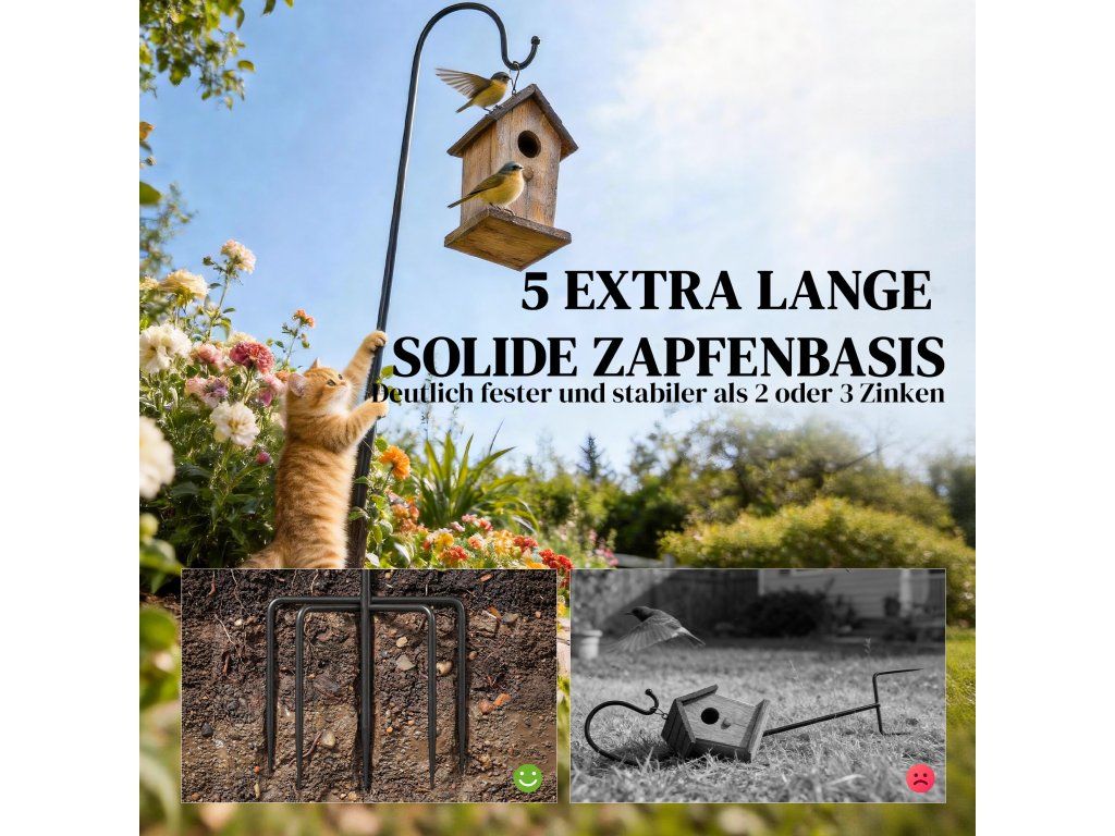 ✔ Bezpečné ukotvení v půdě, trávě nebo zahradních záhonech, a to i ve větrných podmínkách.