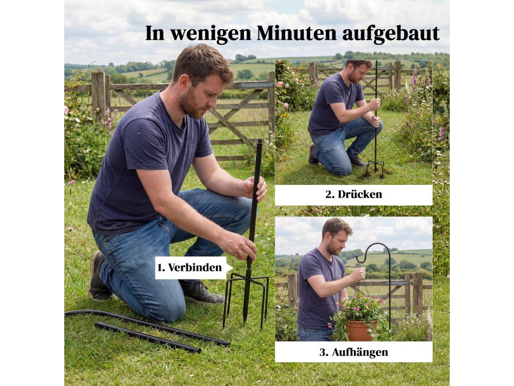 Snadná montáž a skladování: Pastýřské háky lze rychle sestavit a rozložit. Jejich kompaktní formát je ideální pro malé skladovací prostory a sezónní změny ve výzdobě.