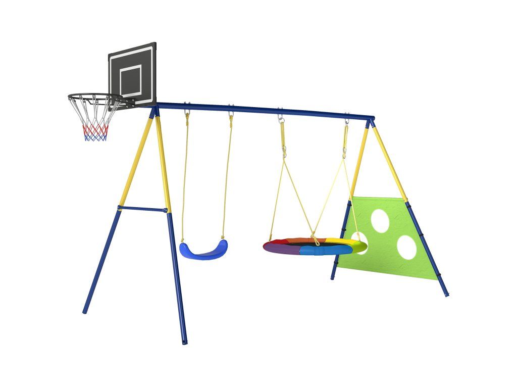 ✔ Obsahuje houpačku hnízdo, houpačku ve tvaru U, basketbalové a fotbalové branky pro nekonečnou zábavu.