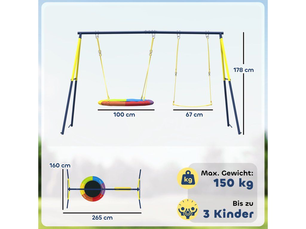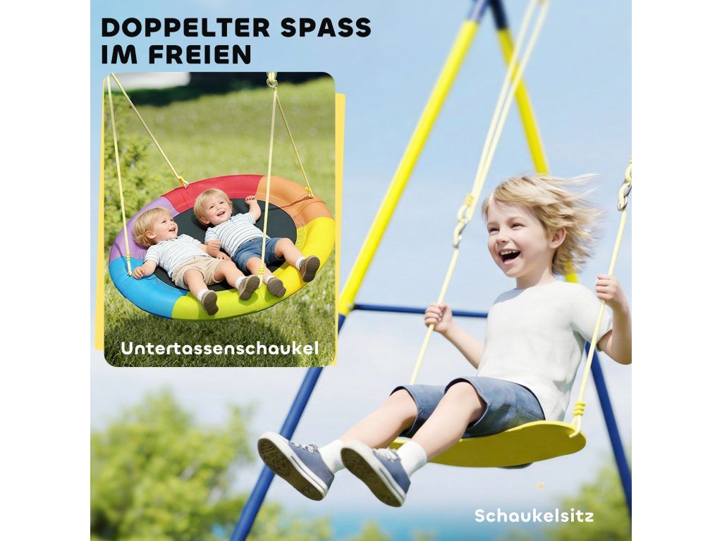 Dvojnásobná zábava: Velká houpačka-hnízdo (Ø100 cm) a měkká houpačka-popruh nabízejí prostor až pro tři děti. Relaxujte nebo soutěžte – pro nekonečnou venkovní zábavu.