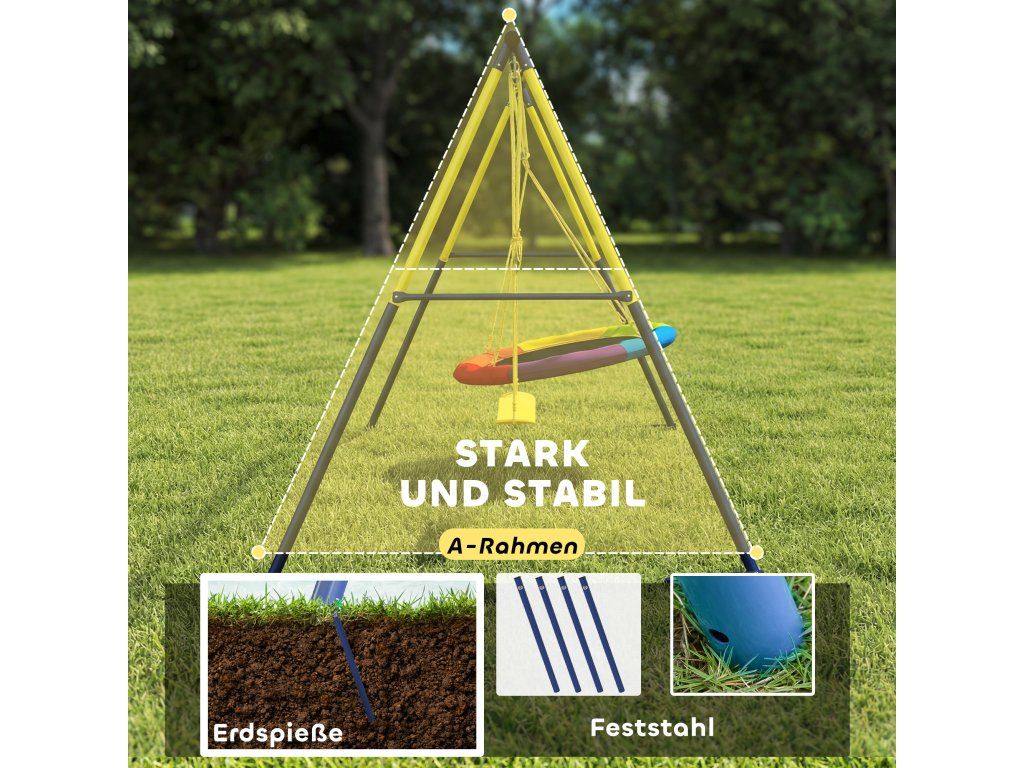 Pevná a stabilní: Robustní ocelová konstrukce s rámem ve tvaru A s trojúhelníkovou podpěrou, čtyřmi zemními kotvami a nosností 150 kg. Zesílená konstrukce rámu venkovní houpačky zaručuje vynikající stabilitu pro bezpečnou hru.