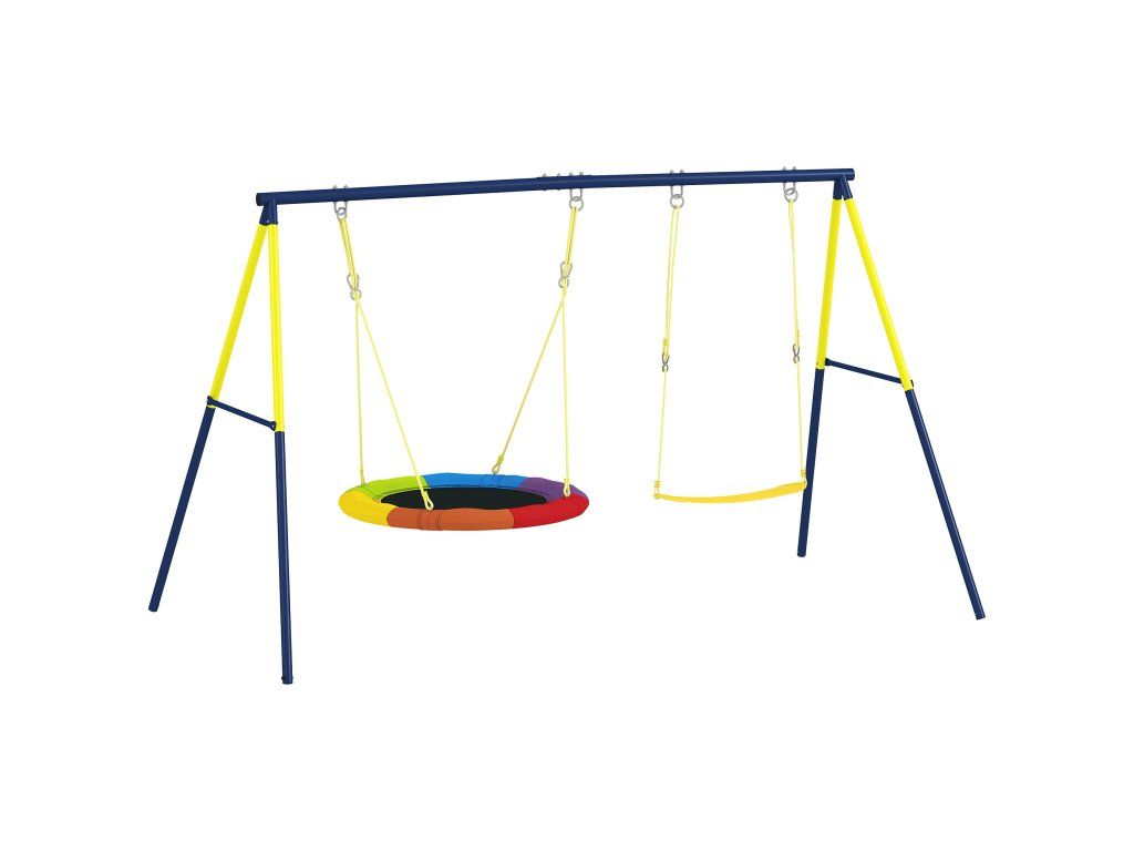 ✔ Součástí je velká houpačka ve tvaru hnízda a klasická houpačka pro společnou zábavu.