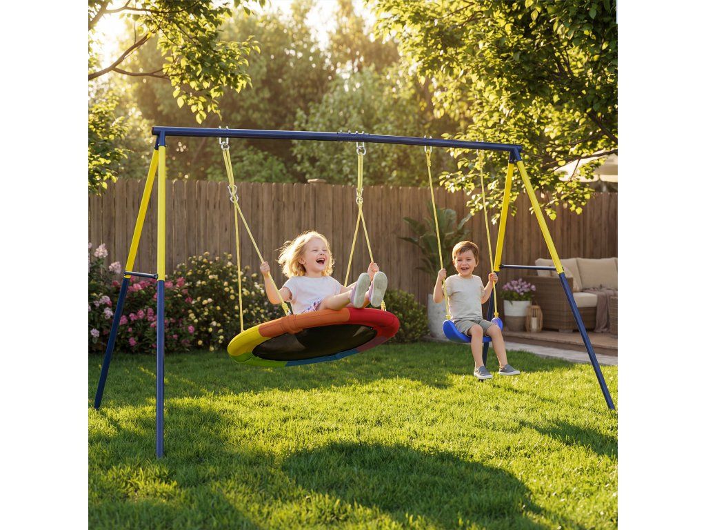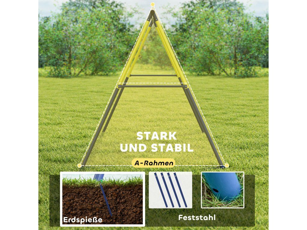 Neotřásatelné Stabilita: Robustní konstrukce ve tvaru A s ocelovým rámem a čtyřmi zemními kotvami poskytuje bezpečnou houpací plochu pro děti (3–8 let). Nosnost až 150 kg zajišťuje bezstarostnou zábavu.