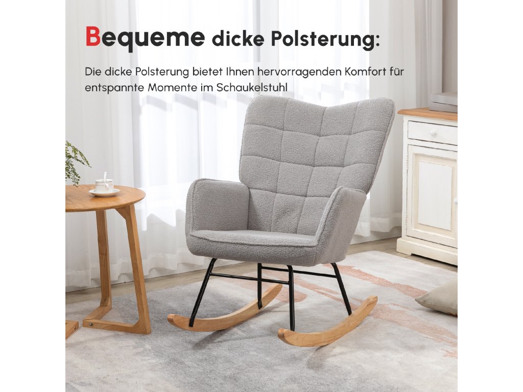 ✔ Zakřivená dřevěná houpací křesla pro jemné houpání.
