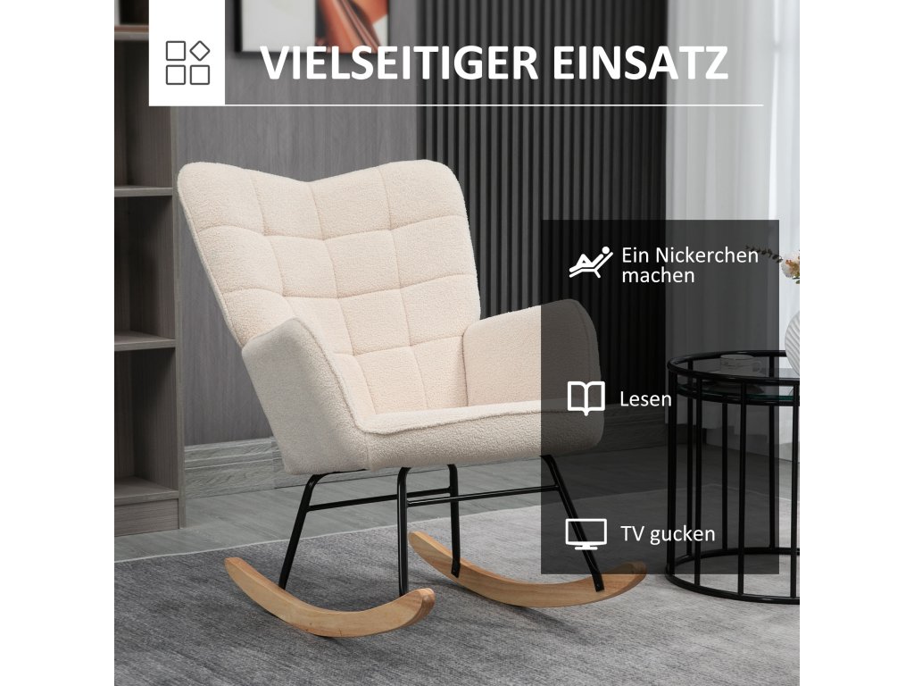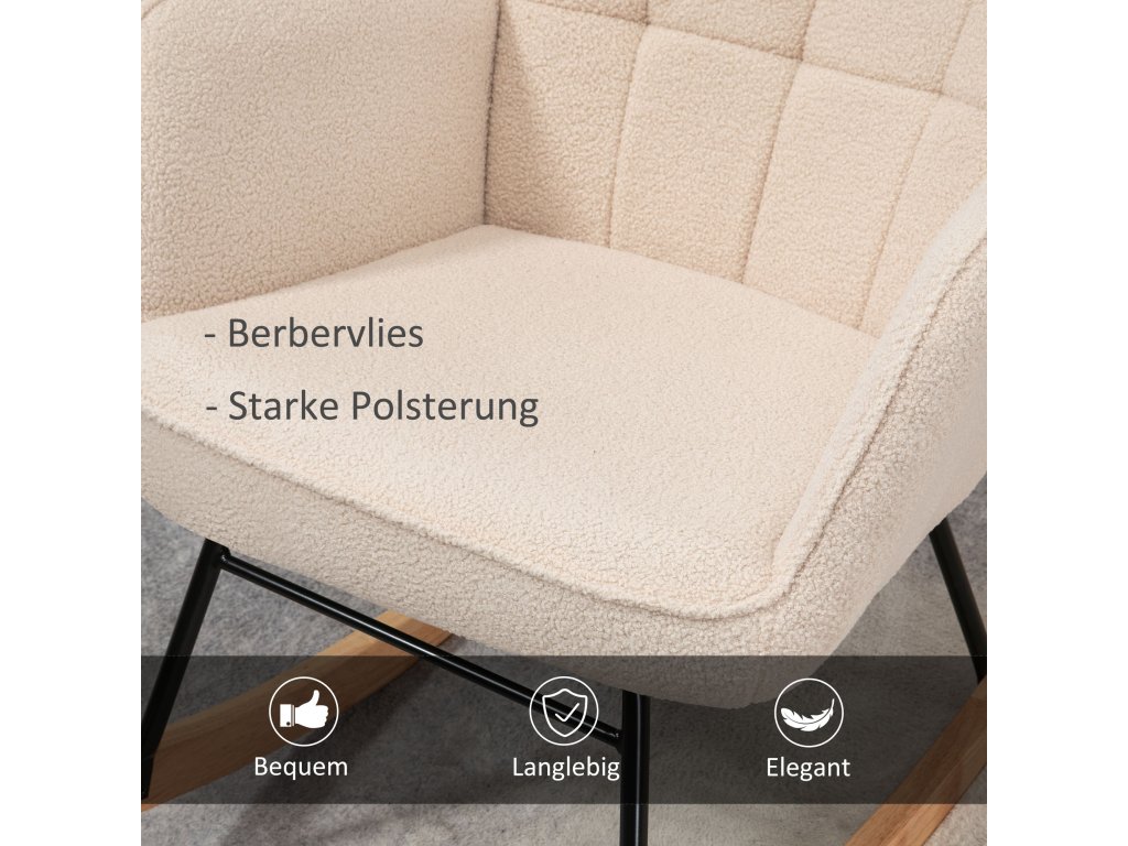 Pohodlný střih: Široké, vysoké opěradlo a velkoryse dimenzované sedadlo houpacího křesla s područkami na obou stranách se přizpůsobí konturám vašeho těla a jsou ideální pro spaní nebo čtení. Povrch berberského rouna je navíc super měkký a atraktivní.