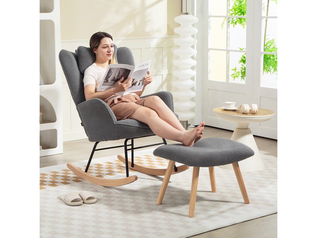 Houpací pohyb 95°-115°: Opřete se v houpacím křesle a užijte si uklidňující houpací pohyb, který vám poskytne relaxaci po dlouhém dni, zatímco si nohy opřete o podnožku.