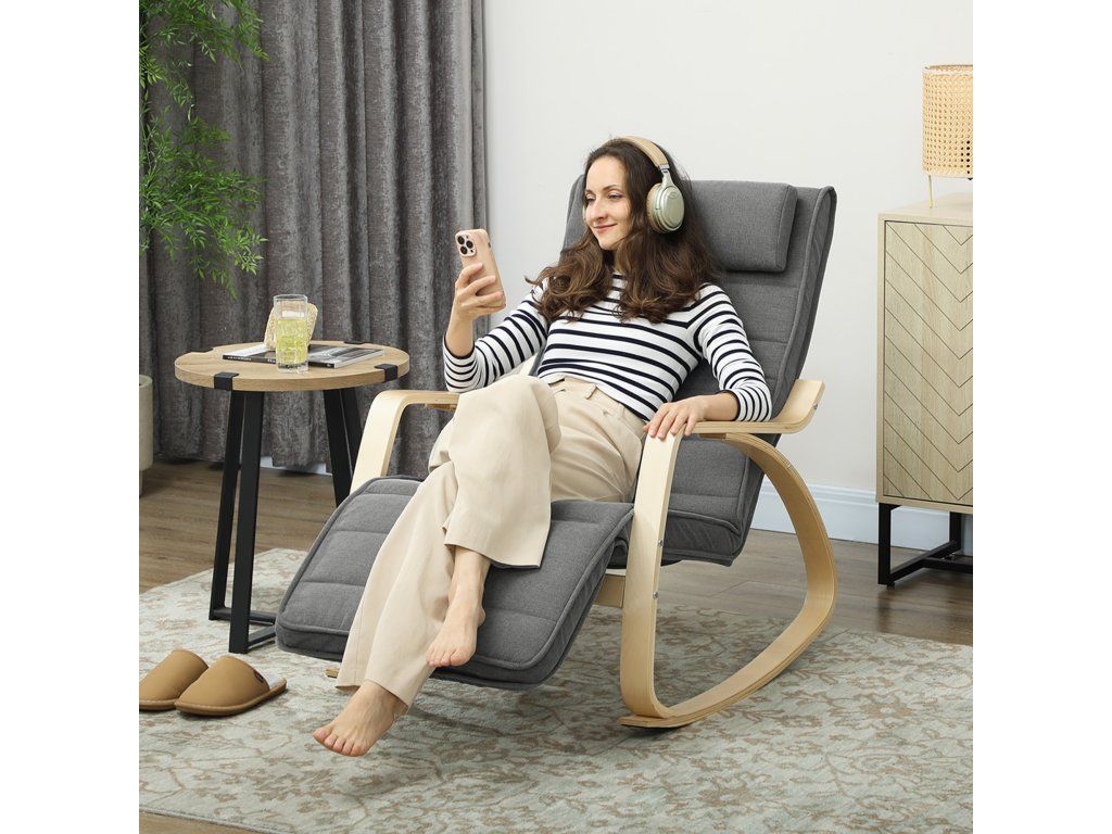 Nastavitelná opěrka nohou: Plynule nastavte opěrku nohou od 0° do 90° s pěti úrovněmi nastavení, abyste vždy našli dokonalou polohu kojícího křesla pro čtení, relaxaci nebo sledování televize.