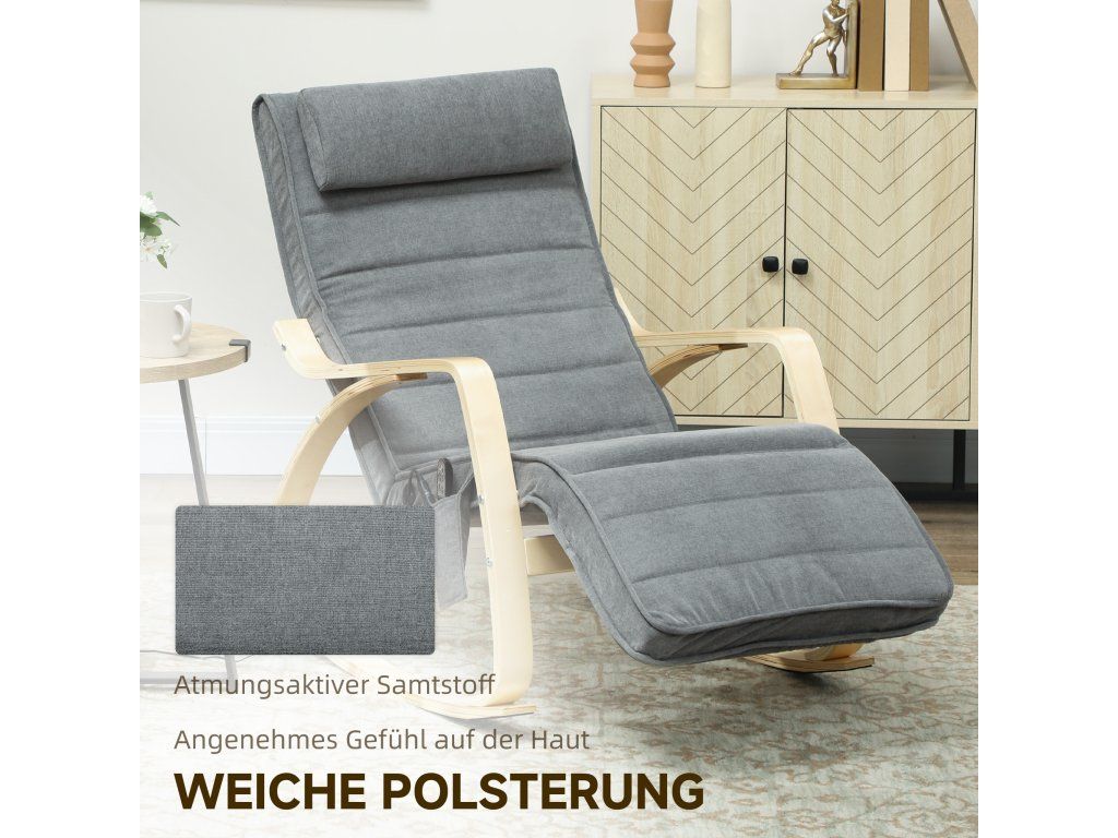 Užijte si čistou relaxaci s masážním houpacím křeslem. Vyznačuje se osmibodovou masáží a uklidňujícím bederním teplem. Houpací křeslo je zabaleno do měkkého, prodyšného sametu a polstrované hustou pěnou, která zaručuje maximální pohodlí. Nastavitelná opěrka nohou umožňuje individuální nastavení úhlu mezi 0° a 90°. Díky pevnému rámu z březové překližky a oceli je každý pohyb houpání bezpečný a pohodlný.