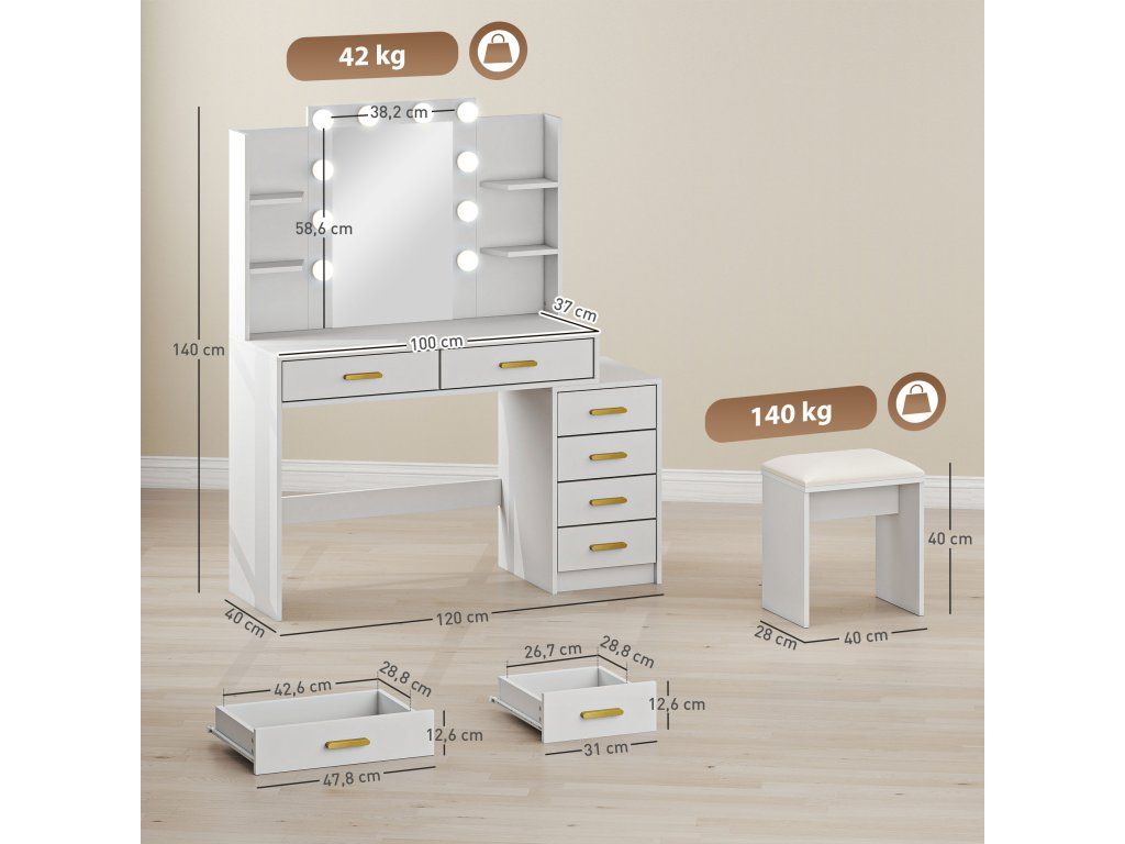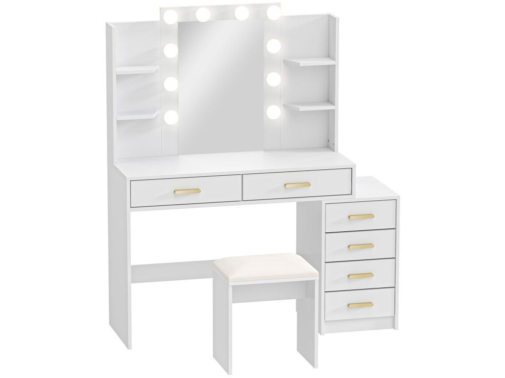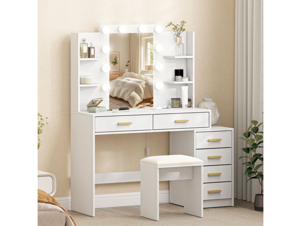 ✔ Bílý povrch toaletního stolku se zlatými úchyty vytváří světlý a moderní líčidlový prostor; Lze jej také použít jako psací stůl.