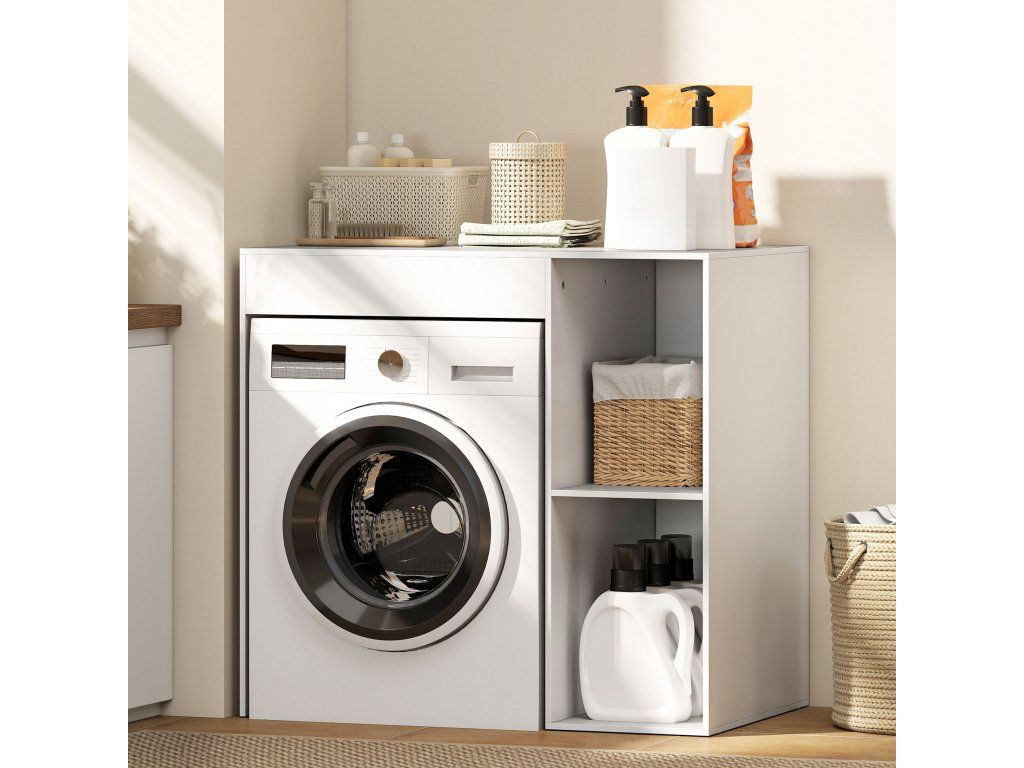 ✔ Robustní dřevotřísková konstrukce skříňky na pračku zůstává stabilní i pro rušné rodinné praní prádla.