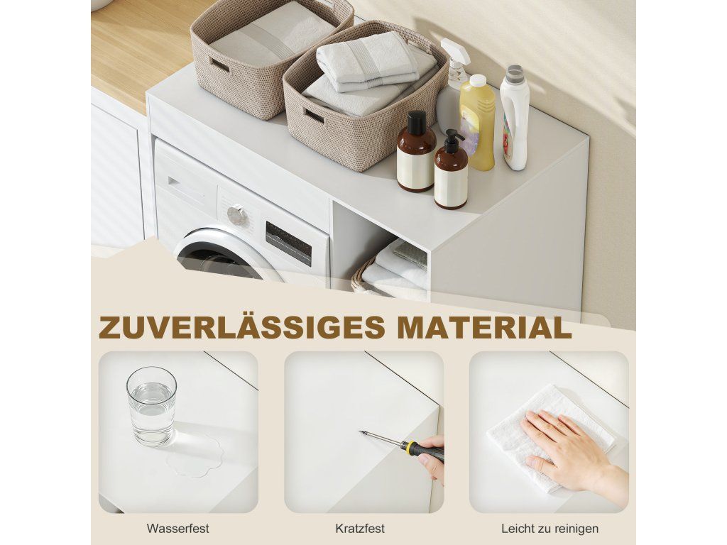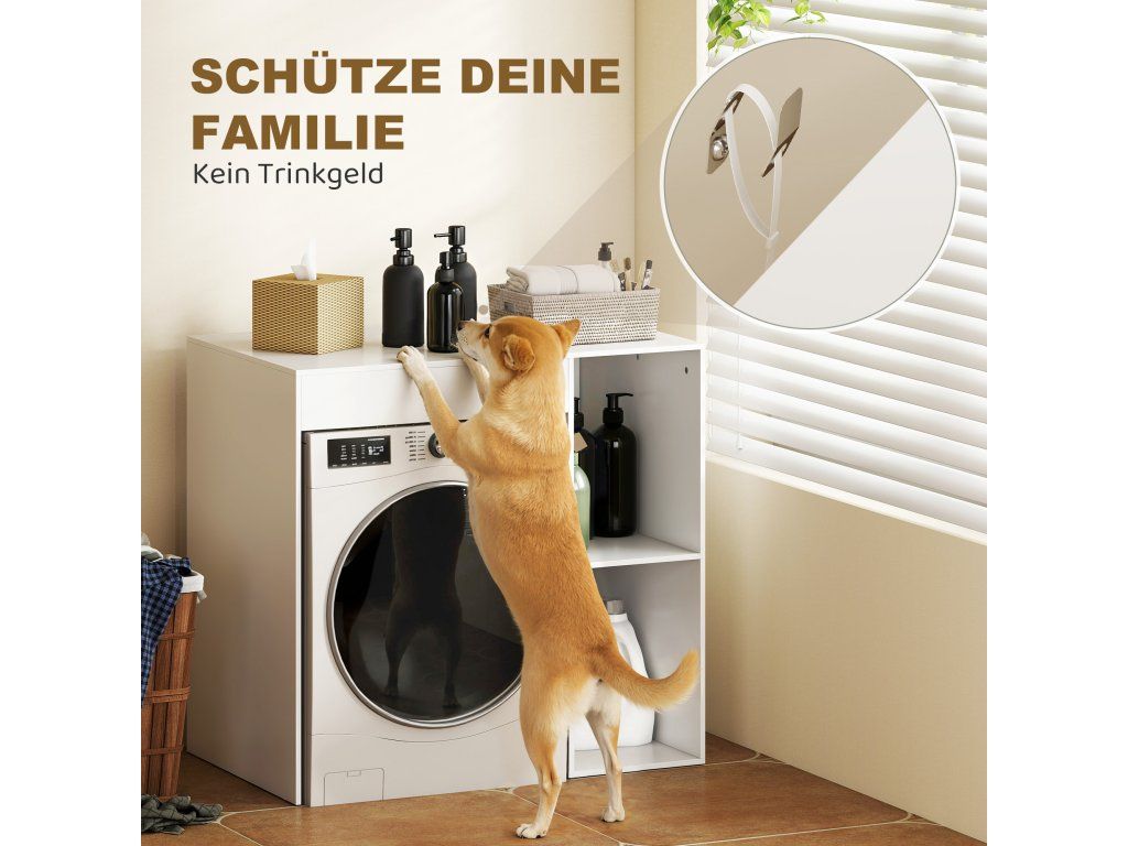 Pro rušný rodinný život: Odolná dřevotříska a ochrana proti převrácení skříňky na pračku zaručují stabilitu a bezpečnost. Ideální pro domácnosti s více lidmi a pravidelným praním.