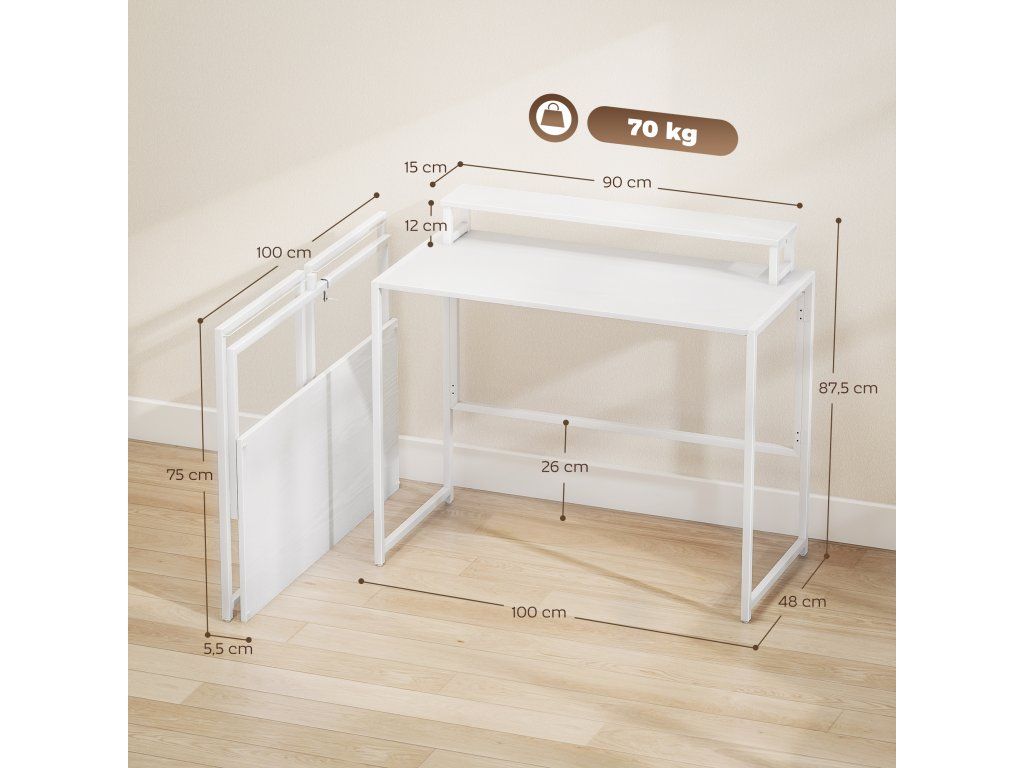Prostorný a praktický: Velkoryslá pracovní plocha 100 x 48 cm a dostatek prostoru pro nohy pod stolem činí z tohoto skládacího stolu ideální místo pro práci, studium a kreativní projekty.