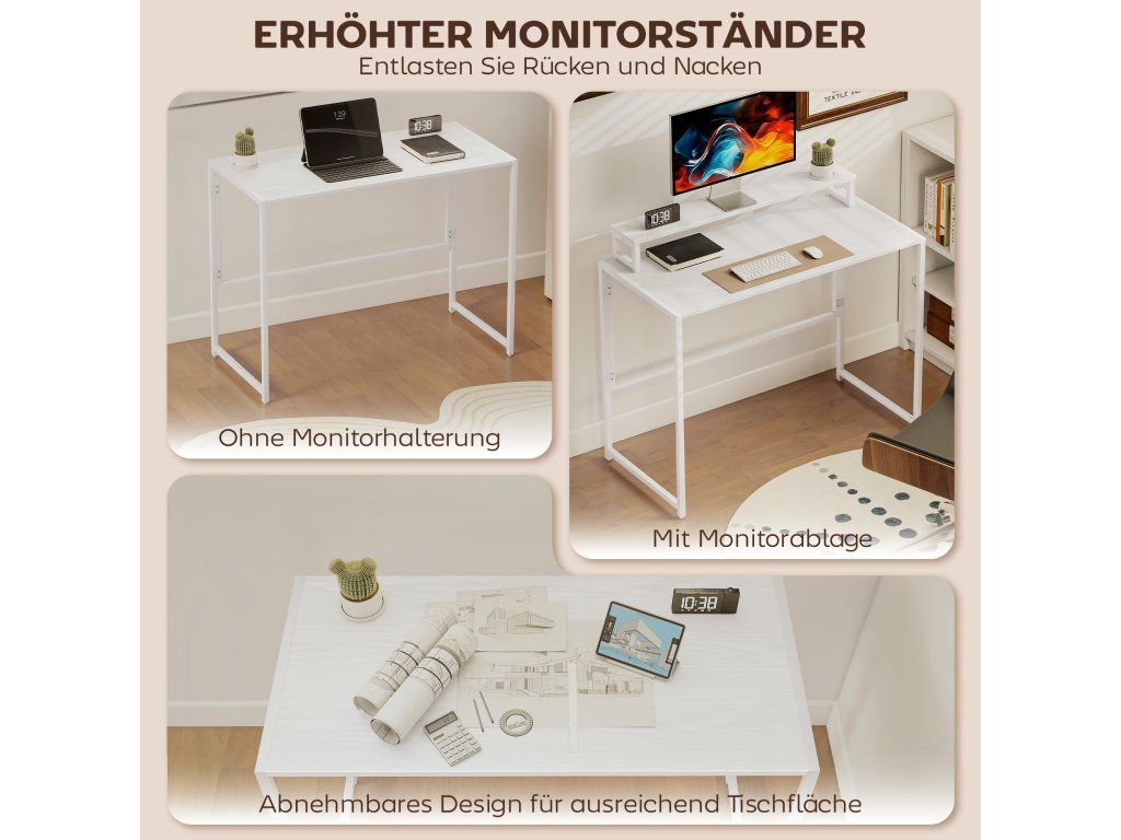 S odnímatelnou deskou: Pohodlnou odnímatelnou desku stolu lze použít jako stojan na monitor pro ergonomické umístění obrazovky do úrovně očí nebo jako další prostor pro knihy a dekorativní předměty, abyste si udrželi pořádek v pracovním prostoru.