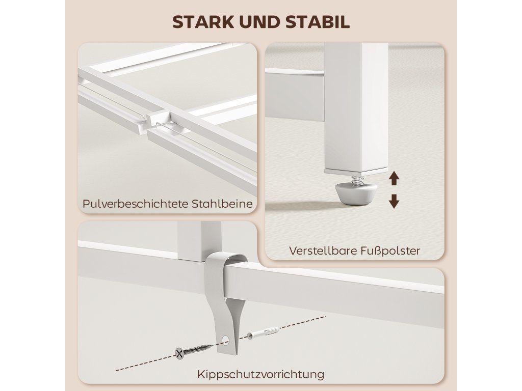 ✔ Robustní ocelové nohy s ochranou proti převrácení zvyšují stabilitu.