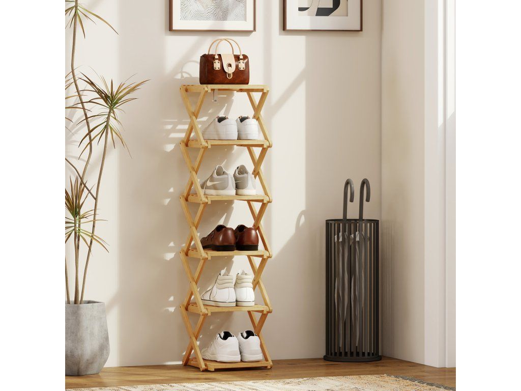 Objevte jednoduchost se šestipatrovým botníkem: vaším řešením pro každodenní nepořádek v botách. Na tomto robustním bambusovém stojanu uložíte až 9 párů bot (maxi EU 40), které budou vždy snadno dostupné. Díky štíhlému designu je ideální do každého rohu a promění přeplněné vstupní prostory v uklizené a klidné prostory. Je také perfektní jako jedinečný stojan na květiny nebo praktická koupelnová polička!